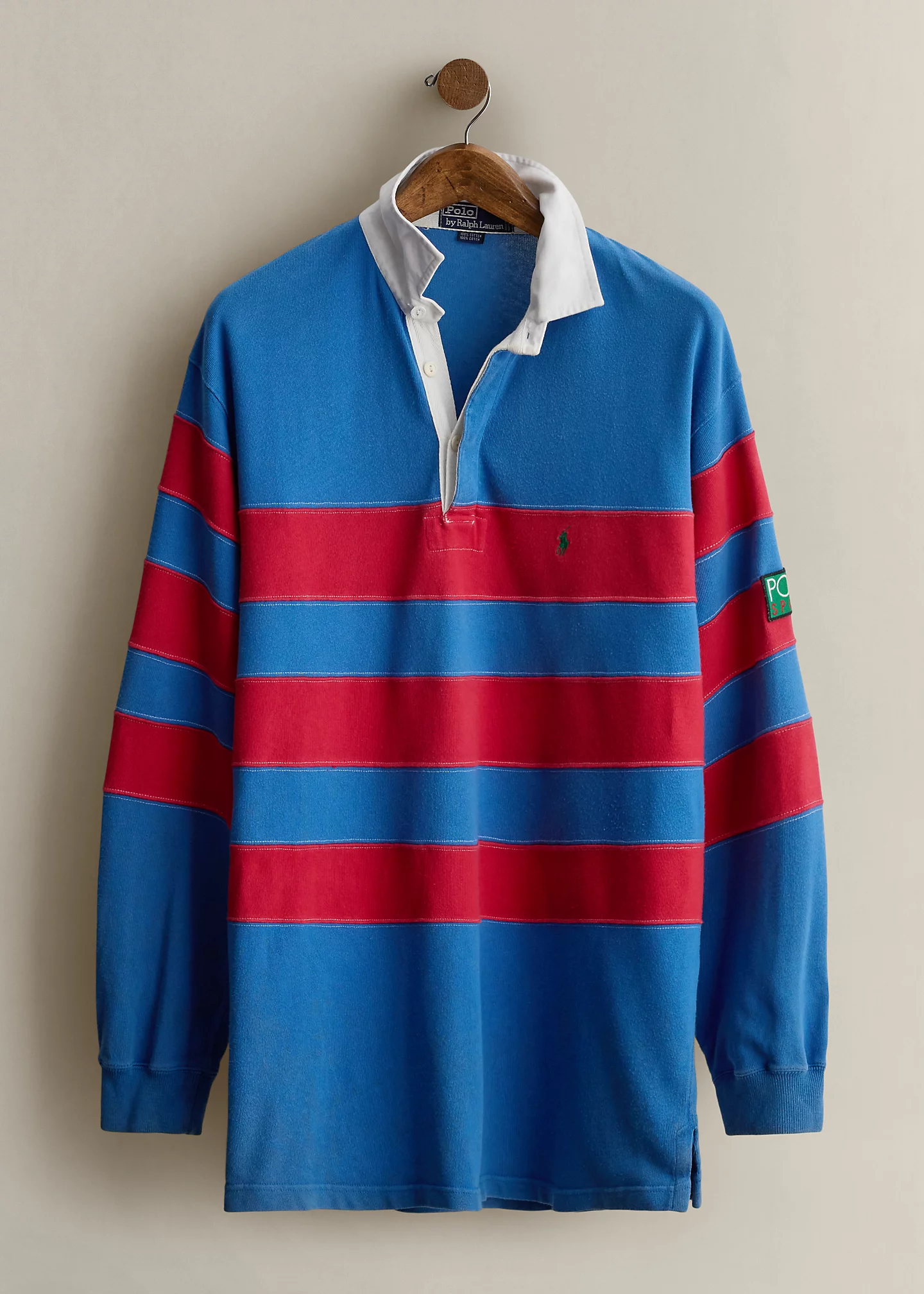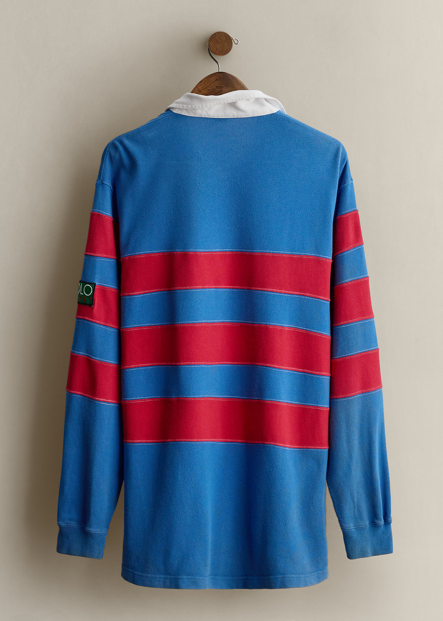 - Contrasting rugby collar. Three-button rugby placket.