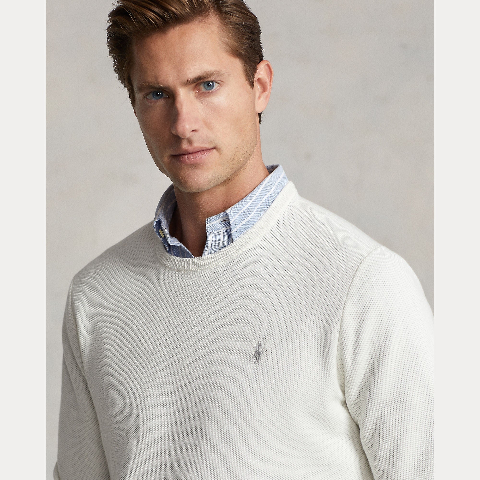 Ralph Lauren have reinterpreted their iconic mesh fabric with soft cotton yarn to create this crewneck jumper. Ralph Lauren partners with Better Cotton™ to improve cotton farming globally. Better Cotton trains farmers to use water efficiently, care for the health of soil and natural habitats, reduce use of the most harmful chemicals and implement the principles of decent work.