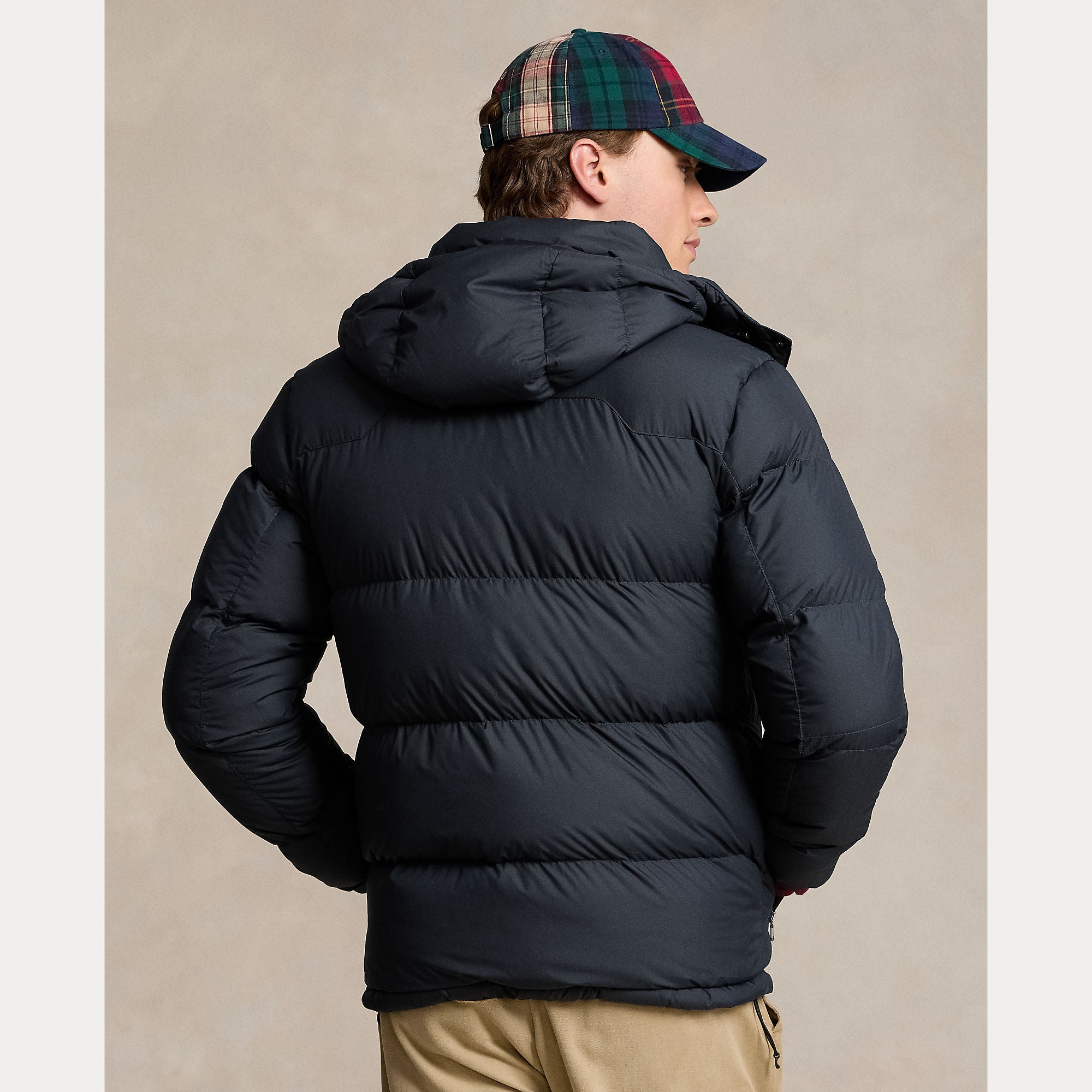 Made from water-repellent ripstop fabric, this jacket is insulated with 650-fill-power down and constructed with a detachable hood.