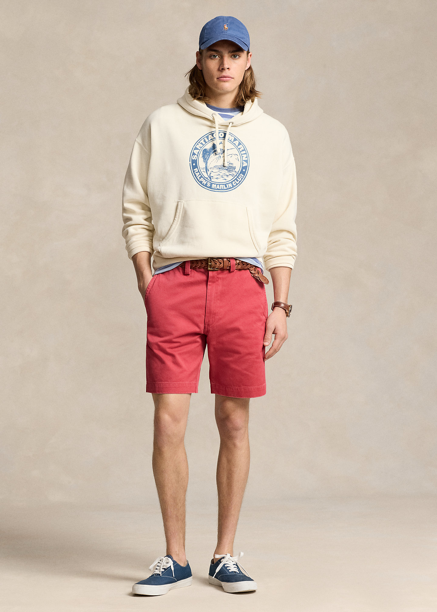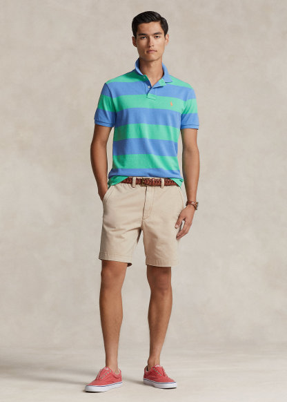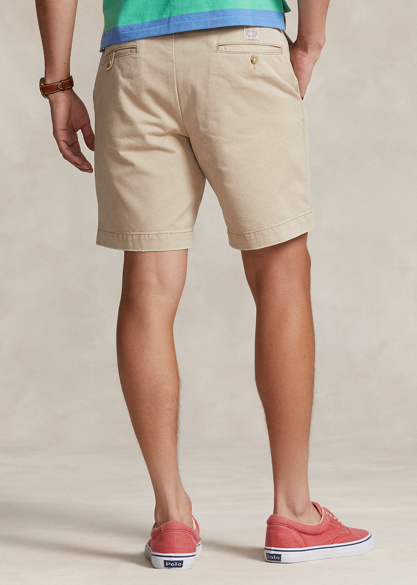 - Two front angled pockets. Right hip coin pocket. Back left buttoned pocket. Back right welt pocket. “Polo Chino Ralph Lauren” label above the back right pocket.