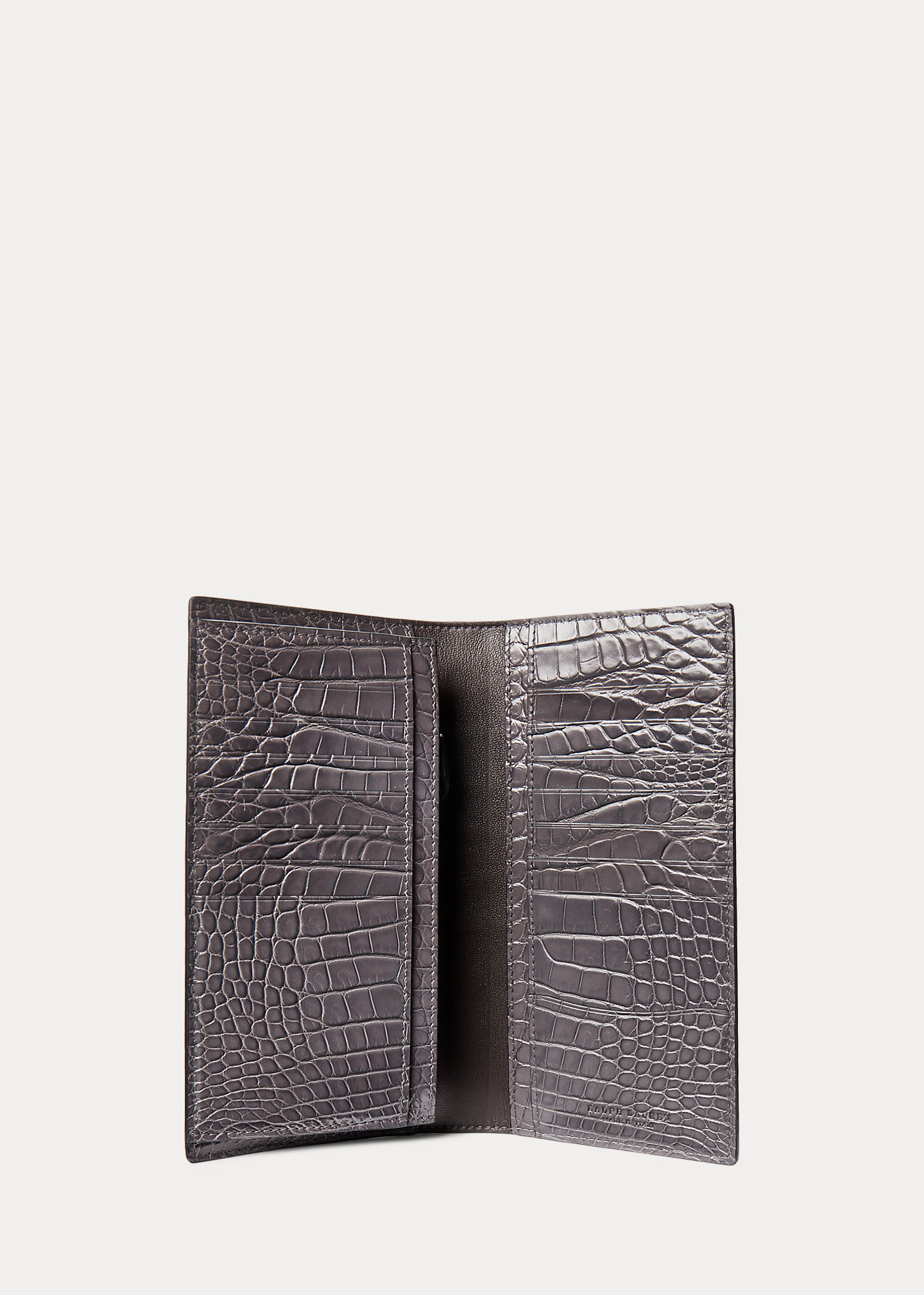 - Shell: alligator. Interior: lambskin. Pocket lining: viscose.