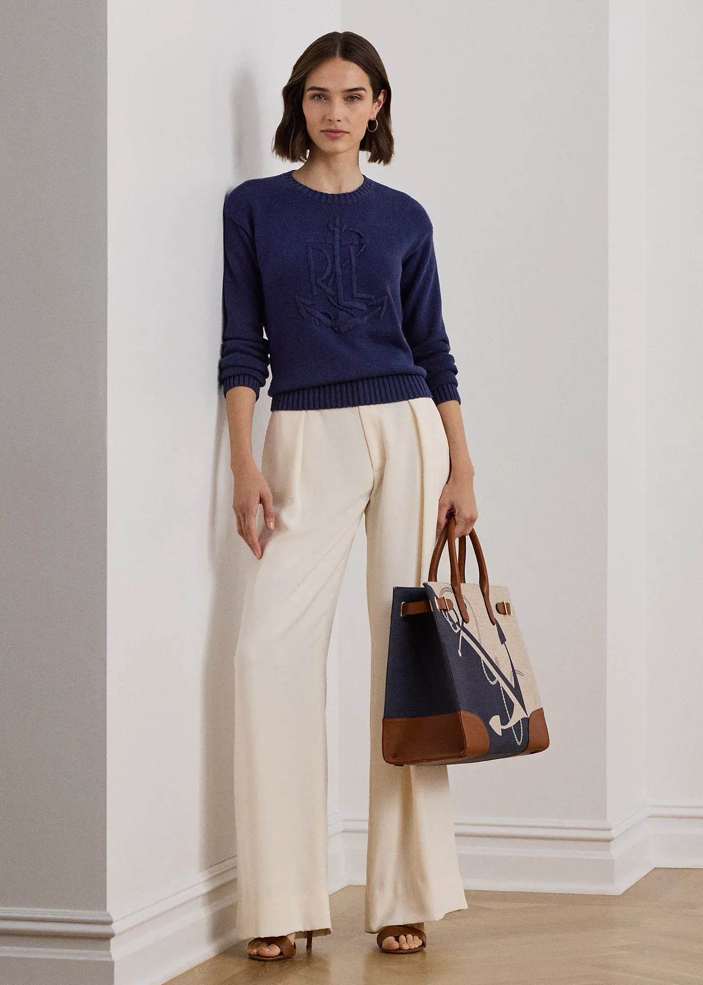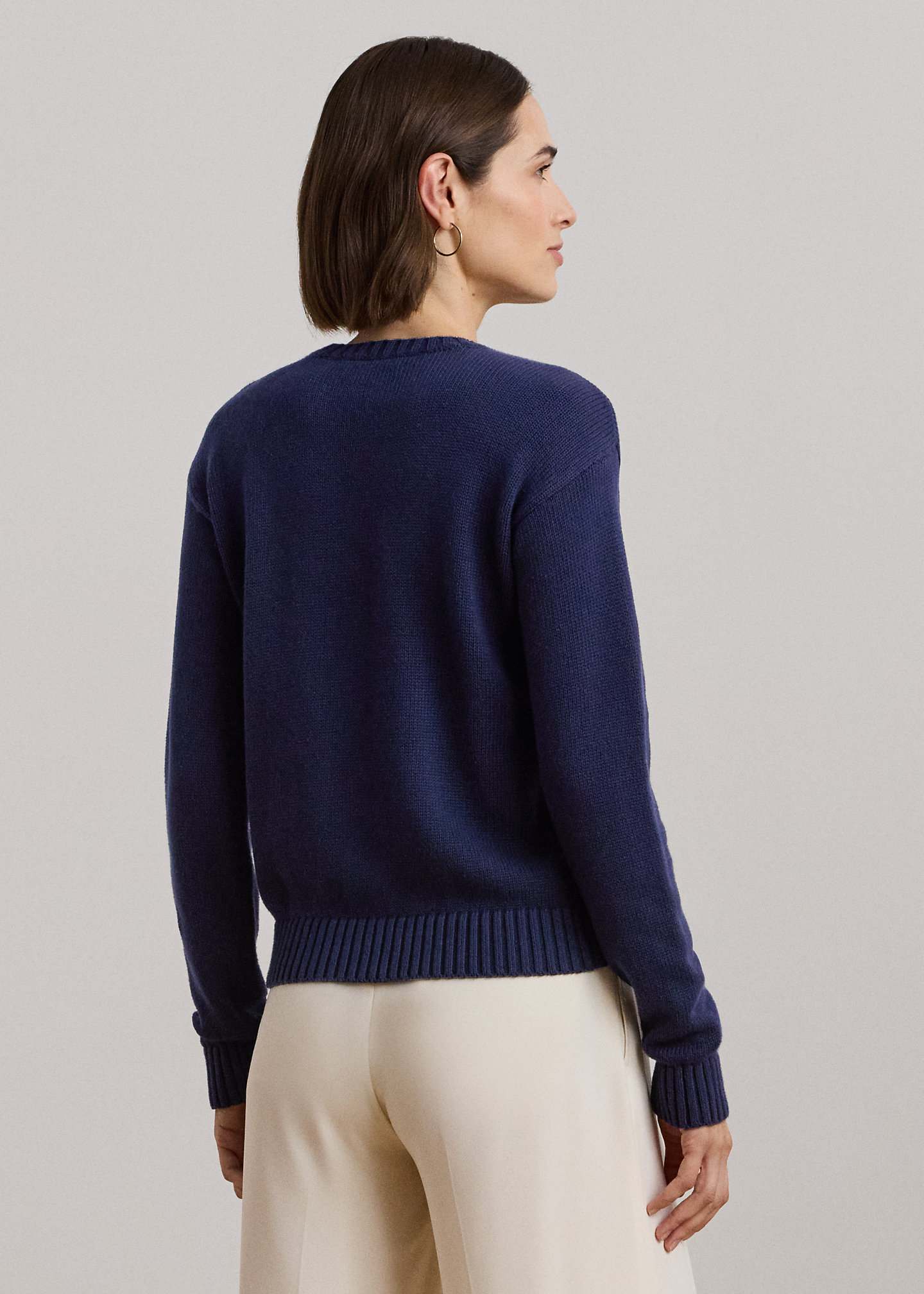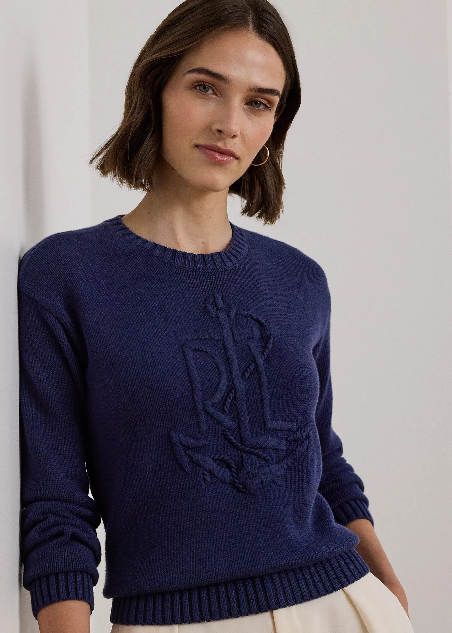 - Long sleeves with ribbed cuffs. Dropped shoulders. Hand-embroidered, oversize “LRL” logo with an anchor at the front. Ribbed hem.