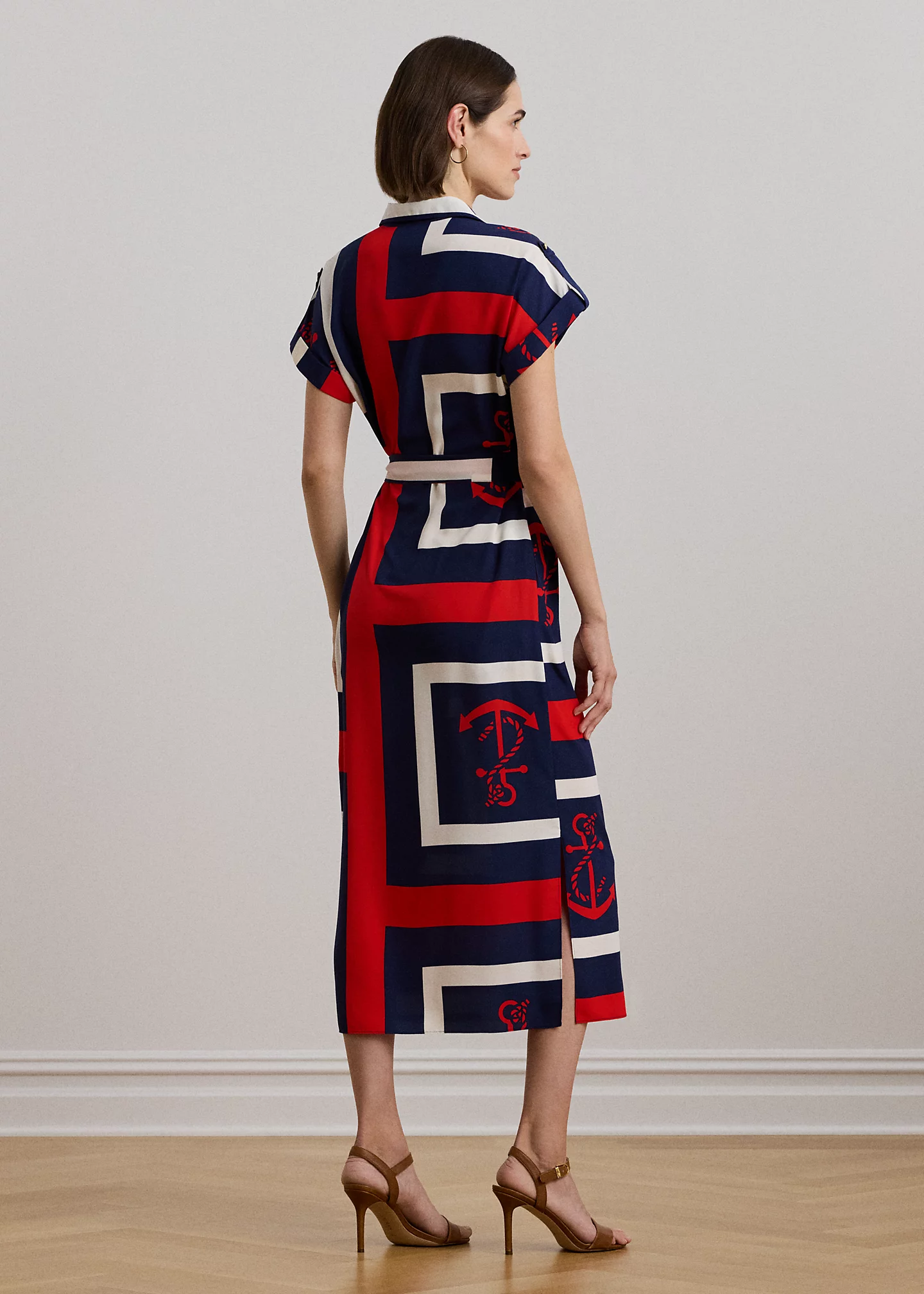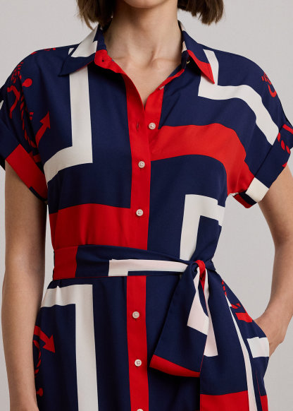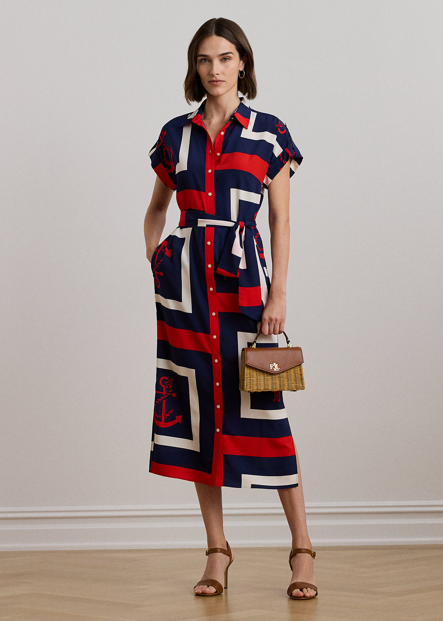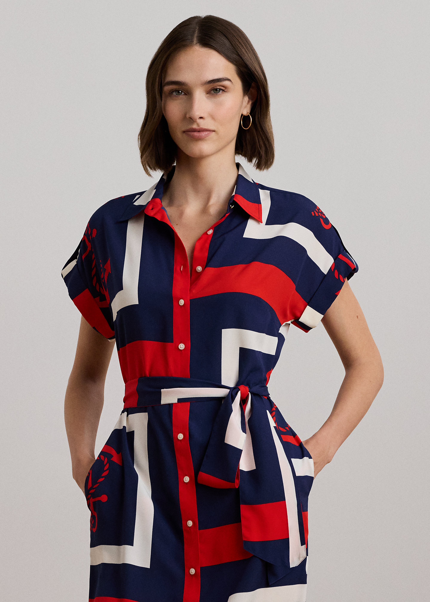 - Short roll-tab sleeves. “LRL”–engraved metal buttons at the collar and cuffs. Side on-seam pockets. Threaded belt loops. Comes with a self-belt.