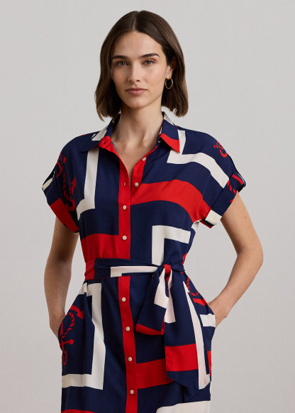 - Point collar. Buttoned placket. “Lauren Ralph Lauren”–engraved pearlized buttons.