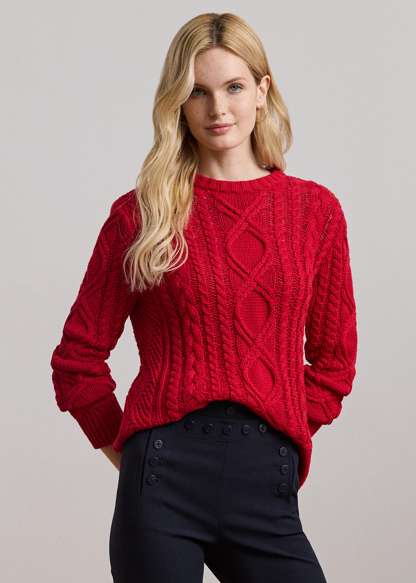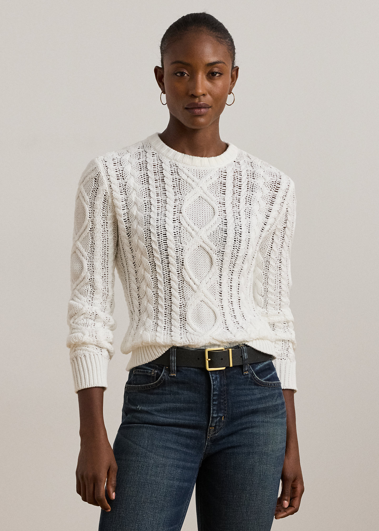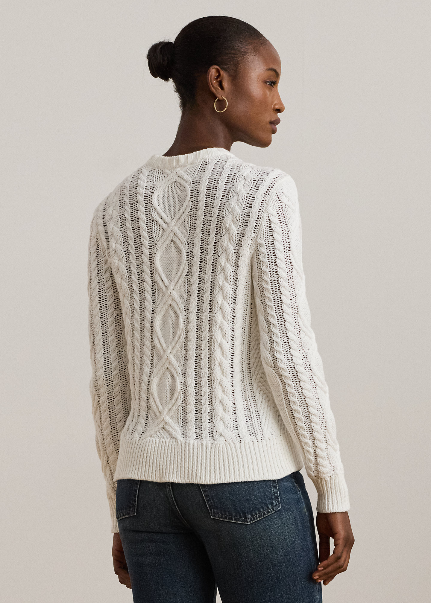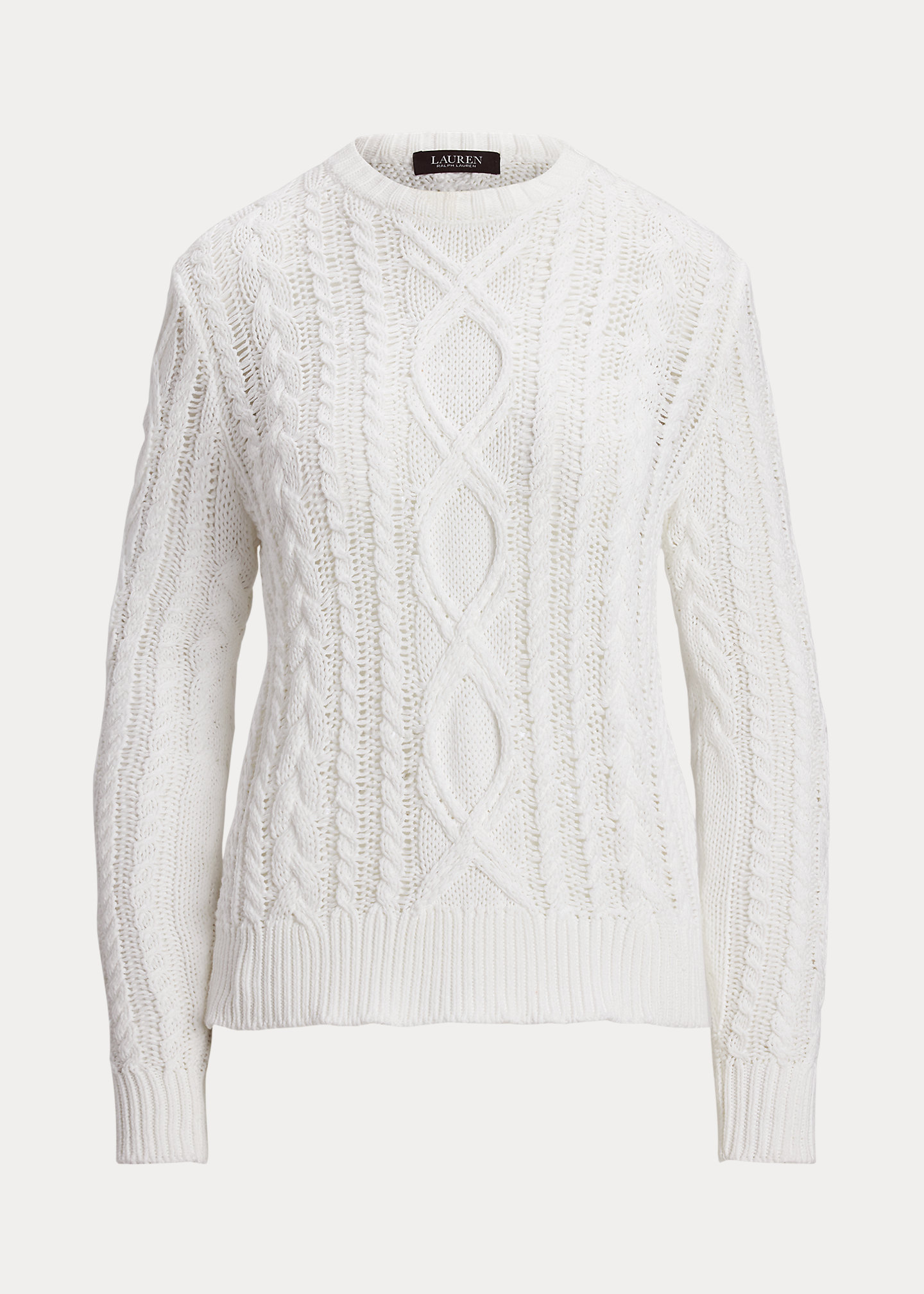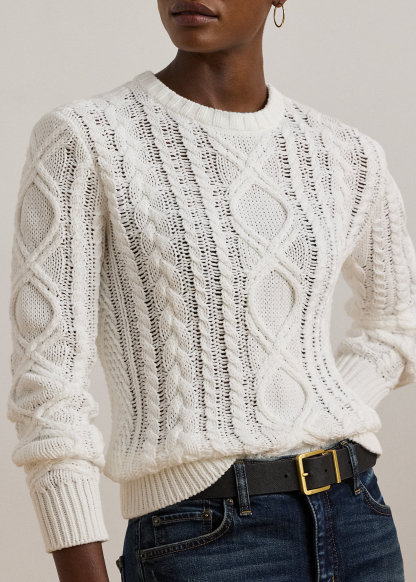 Aran-Knit Cotton-Blend Crewneck Sweater