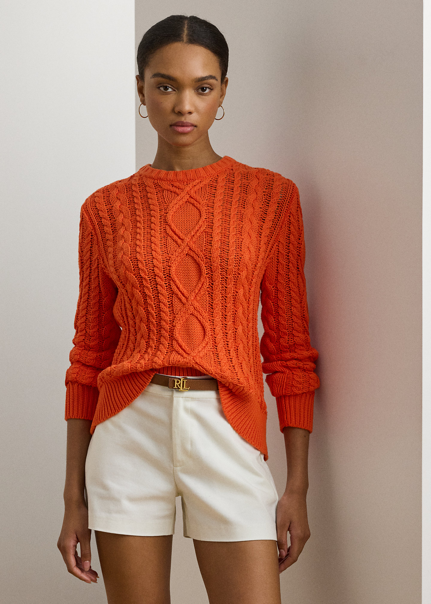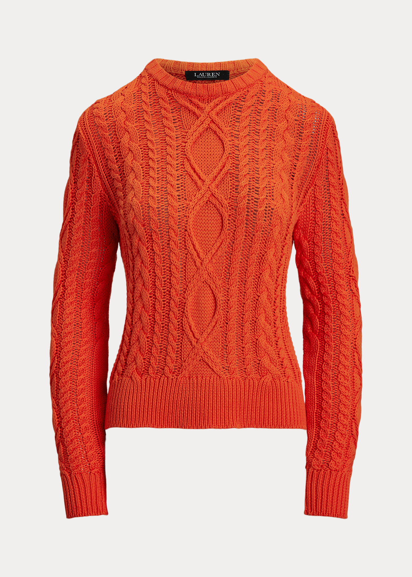 Aran-Knit Cotton-Blend Crewneck Sweater
