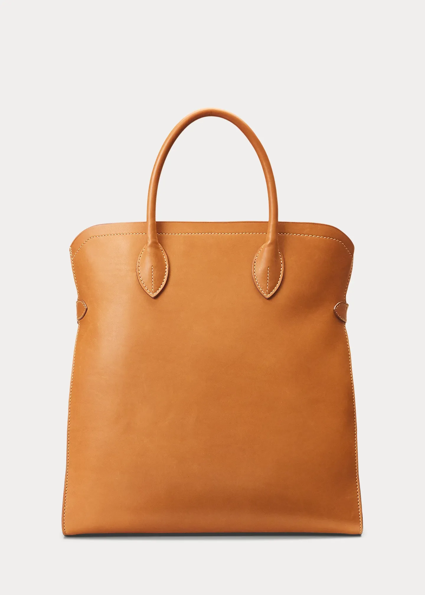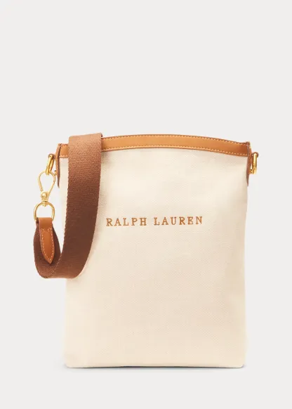 - Calfskin trim and “Ralph Lauren” embroidery at the pouch.