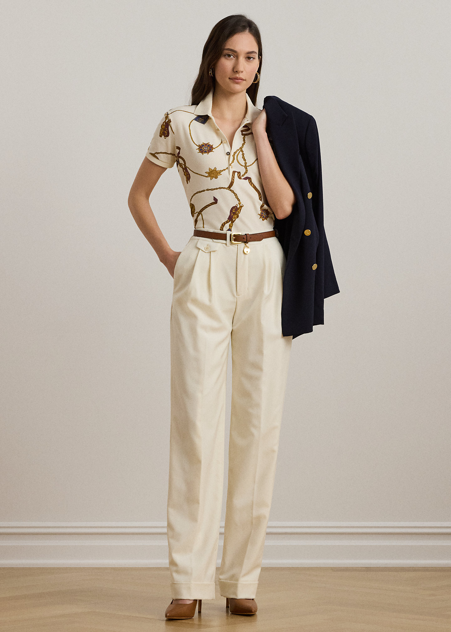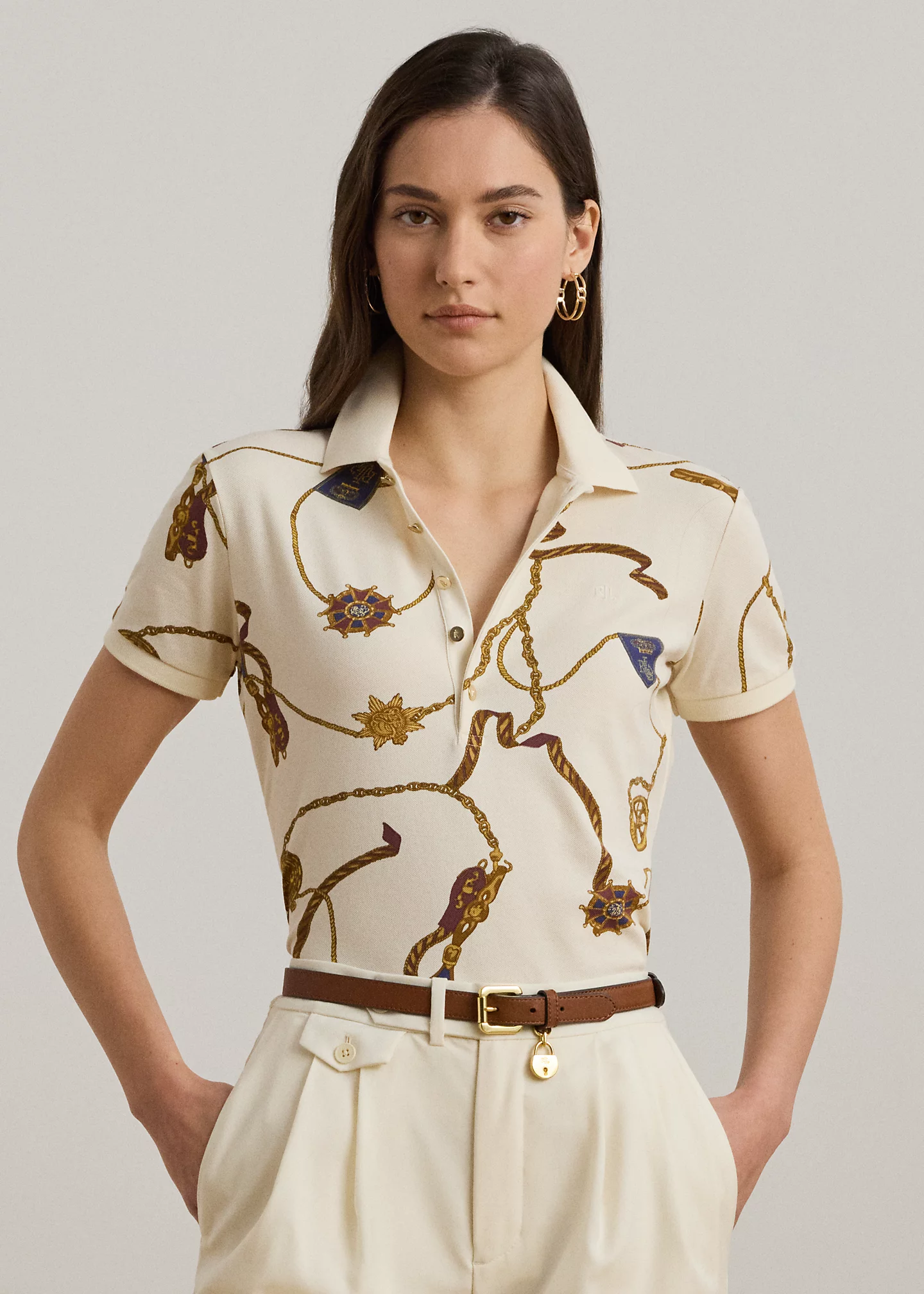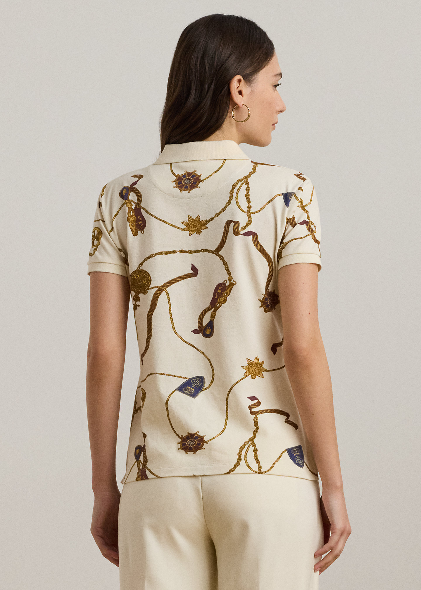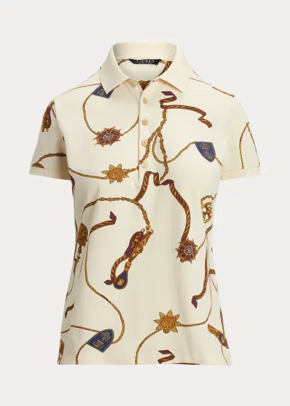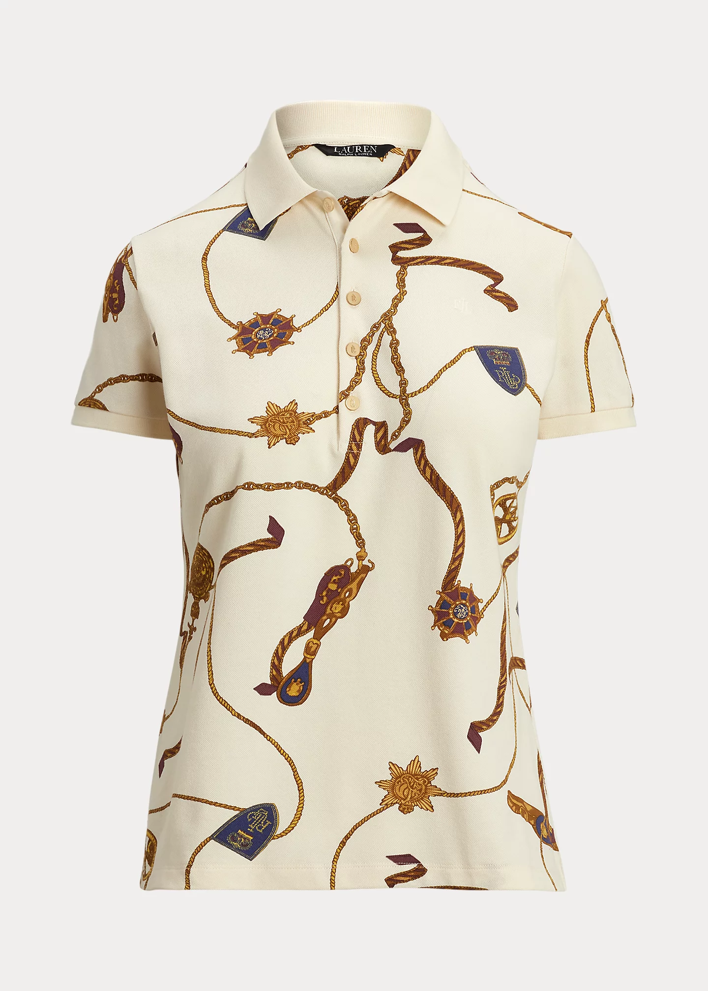 - Ribbed Polo collar. Buttoned quarter-placket. “LRL”-engraved metal buttons.