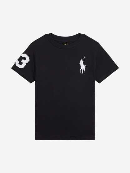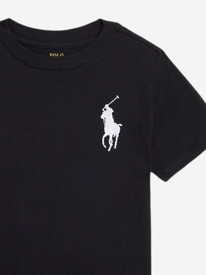 Introducing the Boys Logo T-Shirt in Black by Ralph Lauren, an essential addition to any young gentleman's wardrobe, transcending seasons with its classic design. Relish these features: