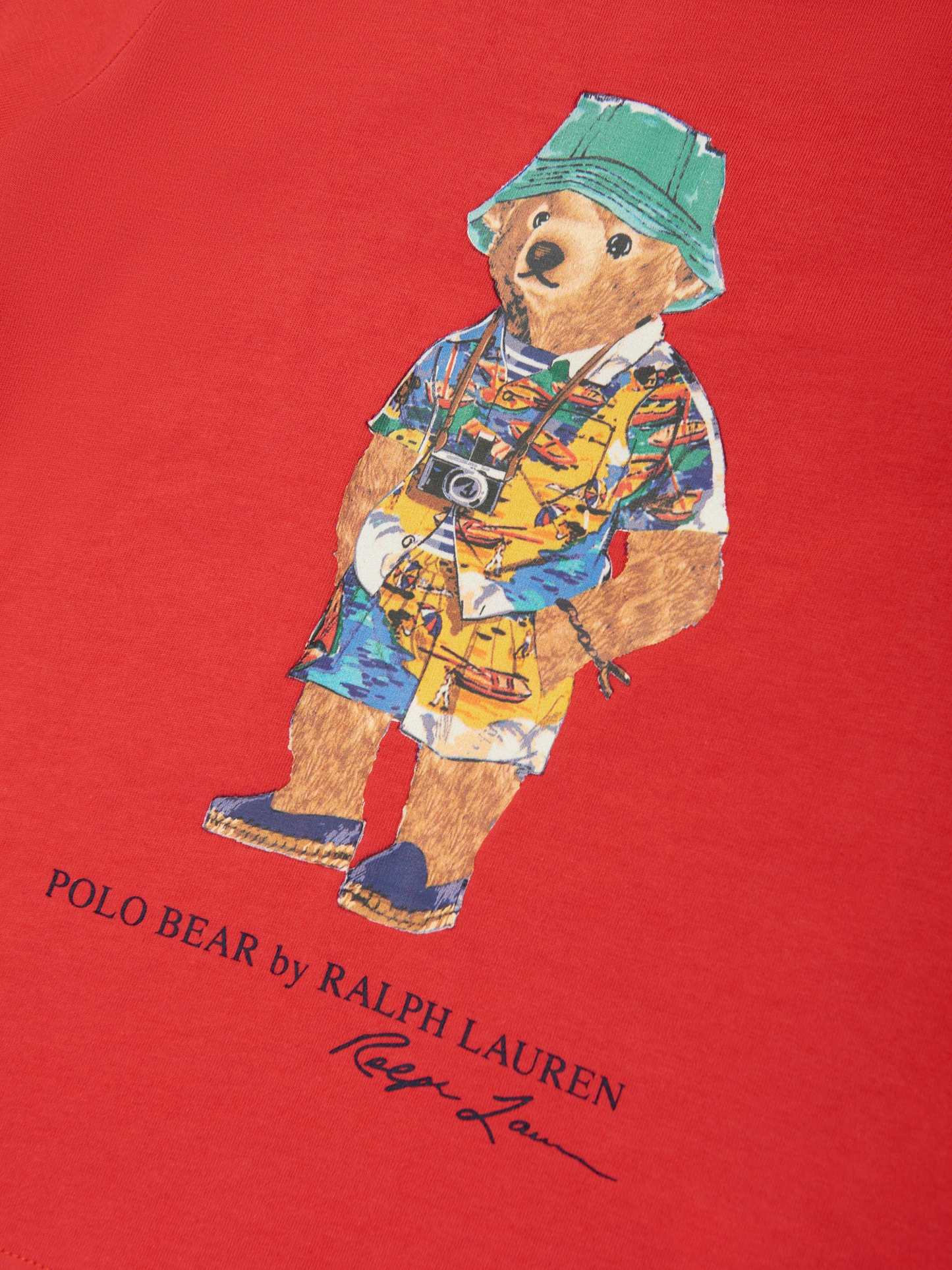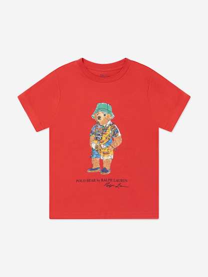 Introducing the Boy's Polo Bear T-Shirt in vibrant orange by Ralph Lauren, a quintessential addition to any young gentleman's wardrobe for SS2025. Each feature is meticulously crafted to ensure style meets comfort: