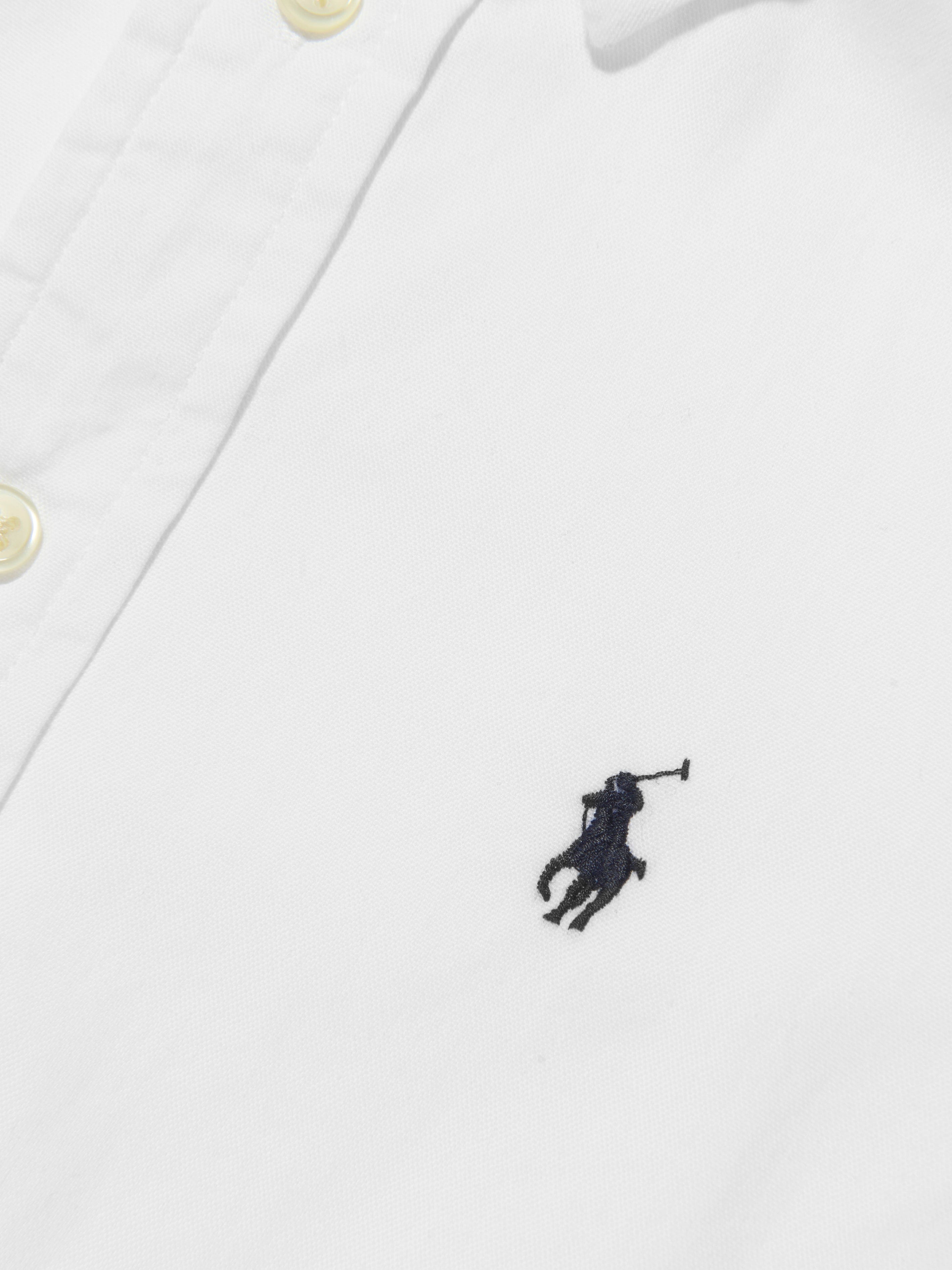 • The perfect upgrade to your boy's wardrobe with this Ralph Lauren's Boys Slim Fit Oxford Shirt in White. Grant your young gentleman the distinguished panache today!
