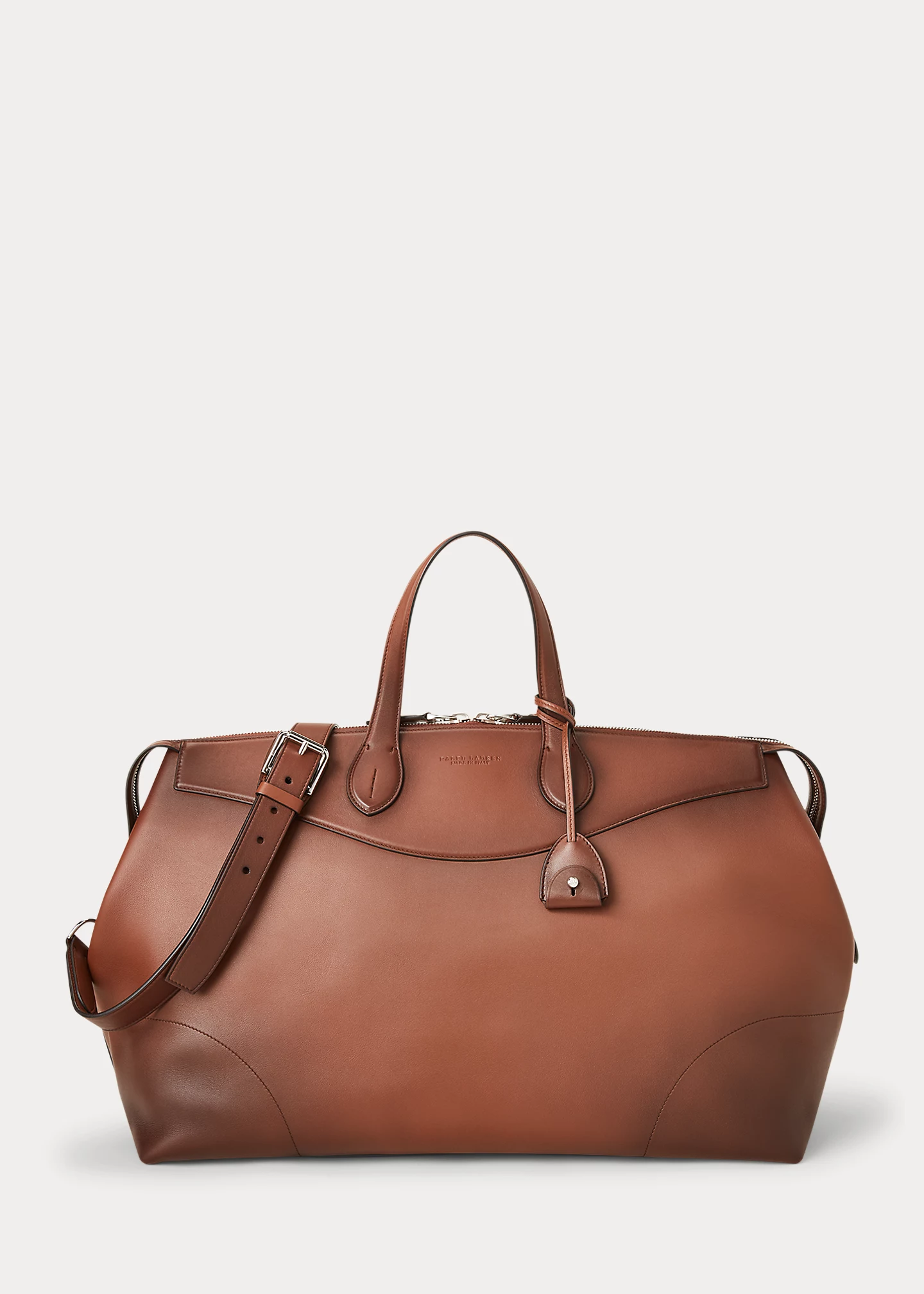 - “Ralph Lauren” debossed at the front. Removable calfskin key bell with "RL"-engraved collar-stud closure.