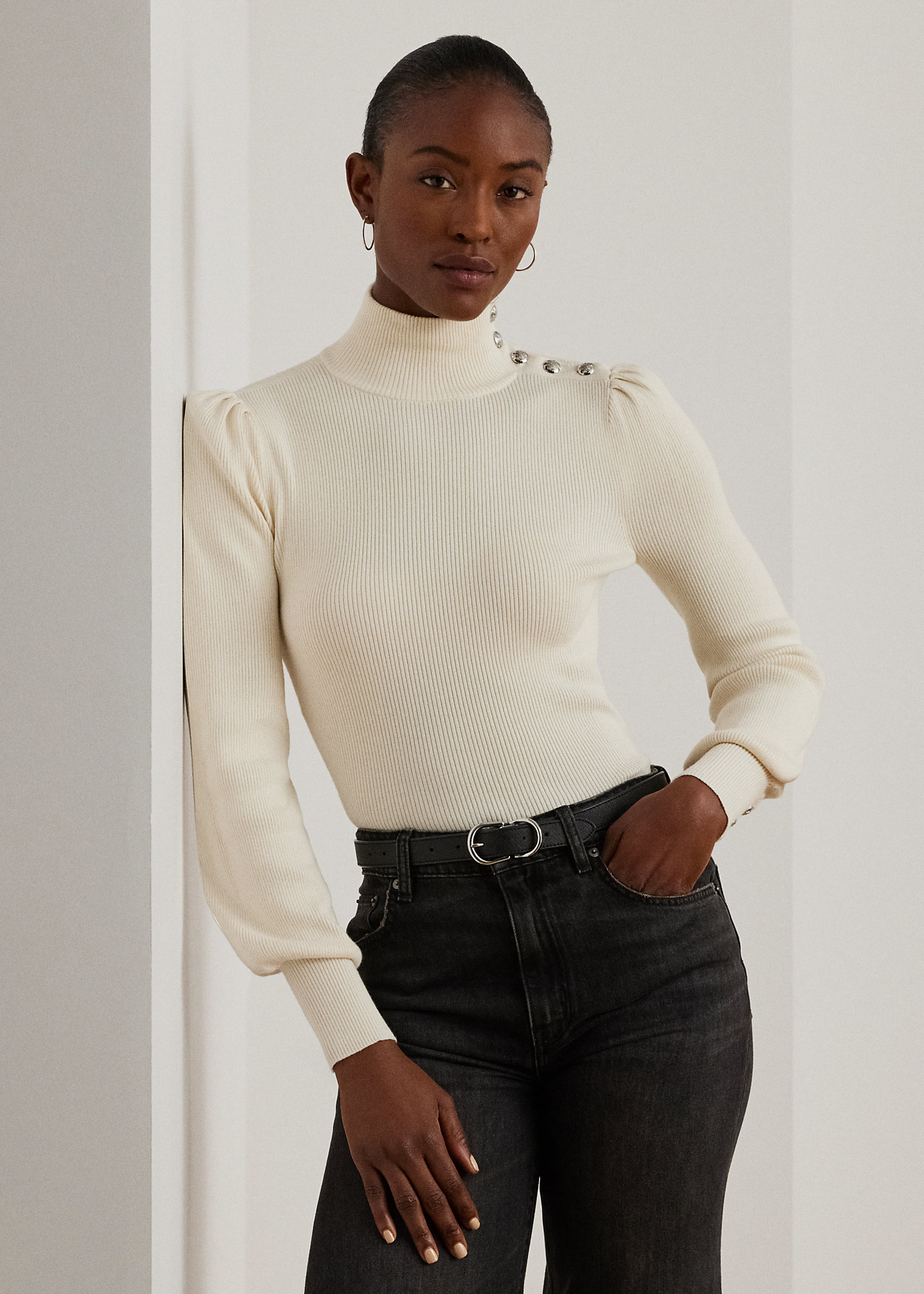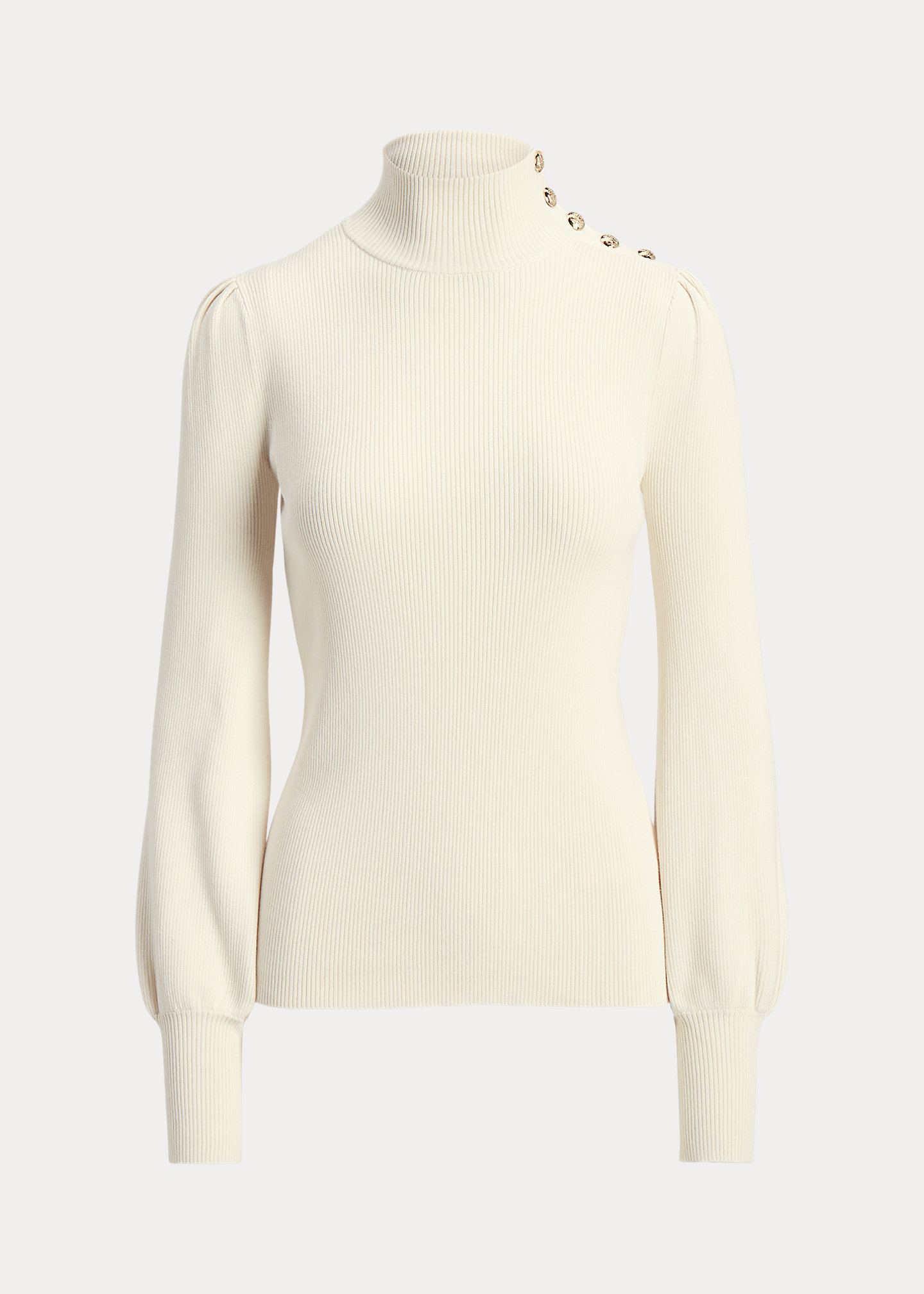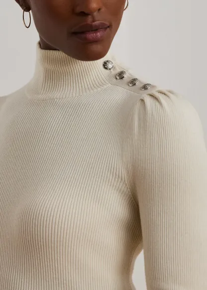 Button-Trim Mockneck Sweater