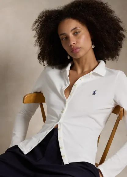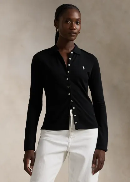 Buttoned-Placket Long-Sleeve Polo Shirt
