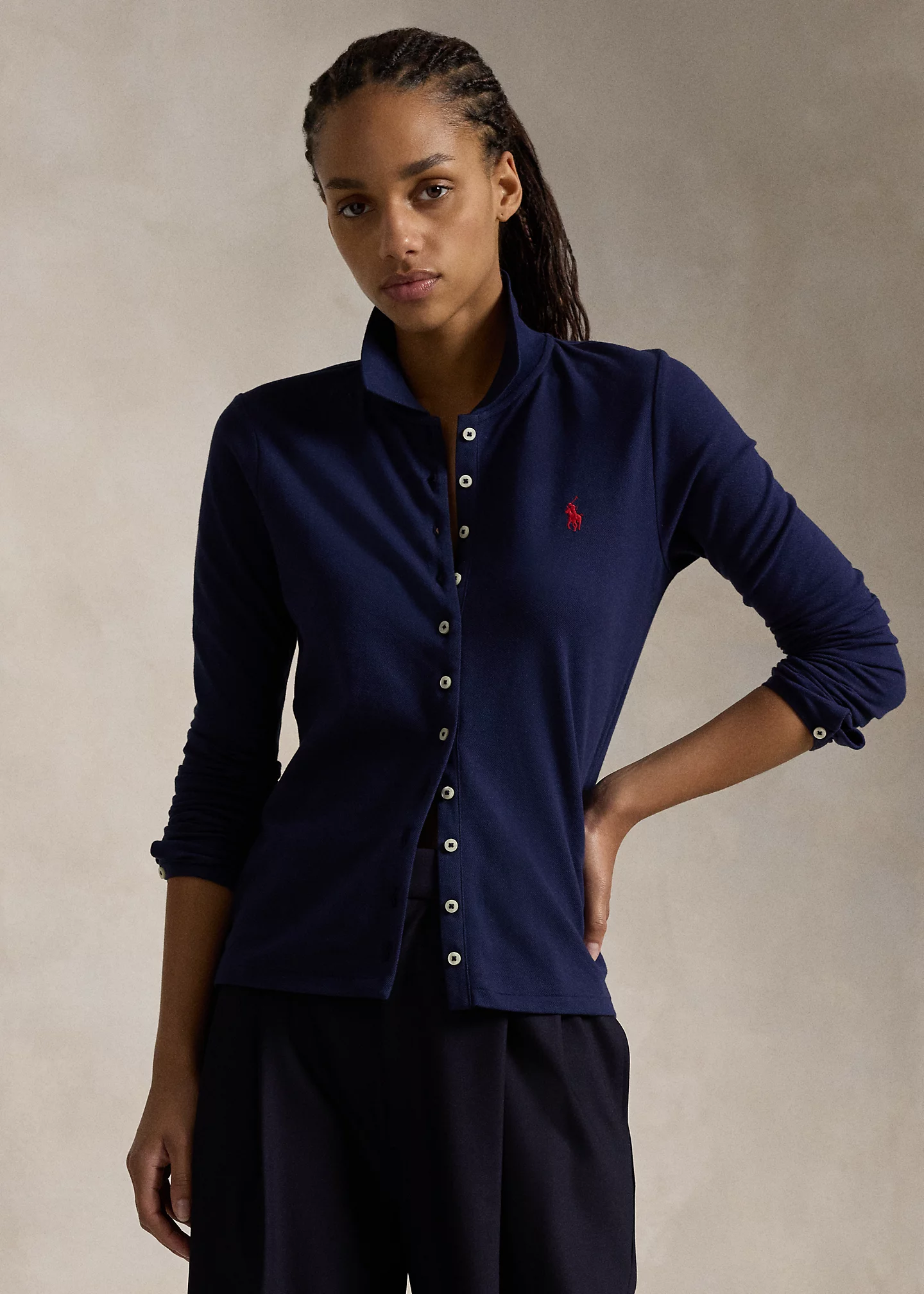 - Long sleeves. Signature embroidered Pony at the left chest.