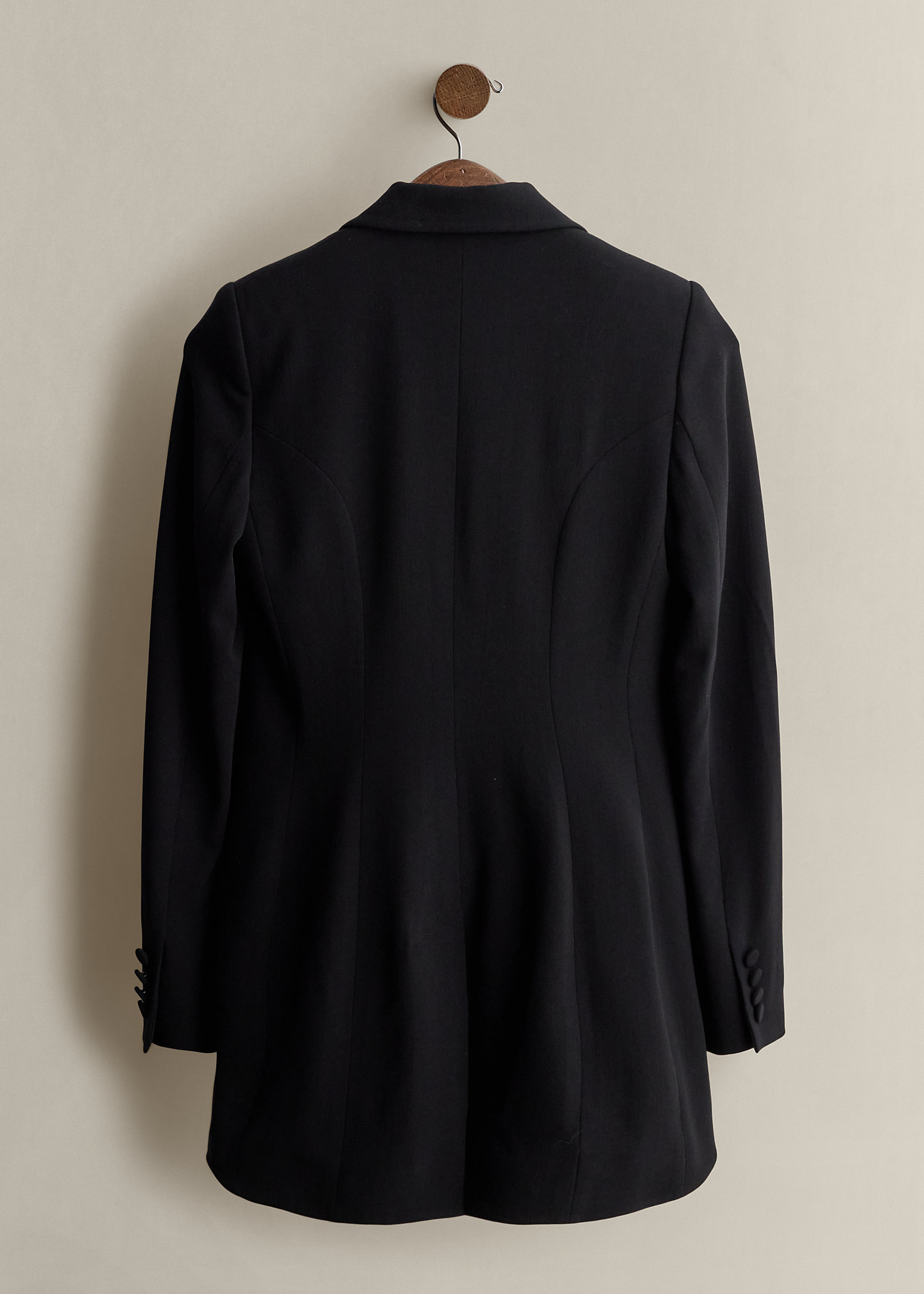 - Long sleeves with four-button cuffs. Left chest welt pocket. Two front waist angled besom pockets.