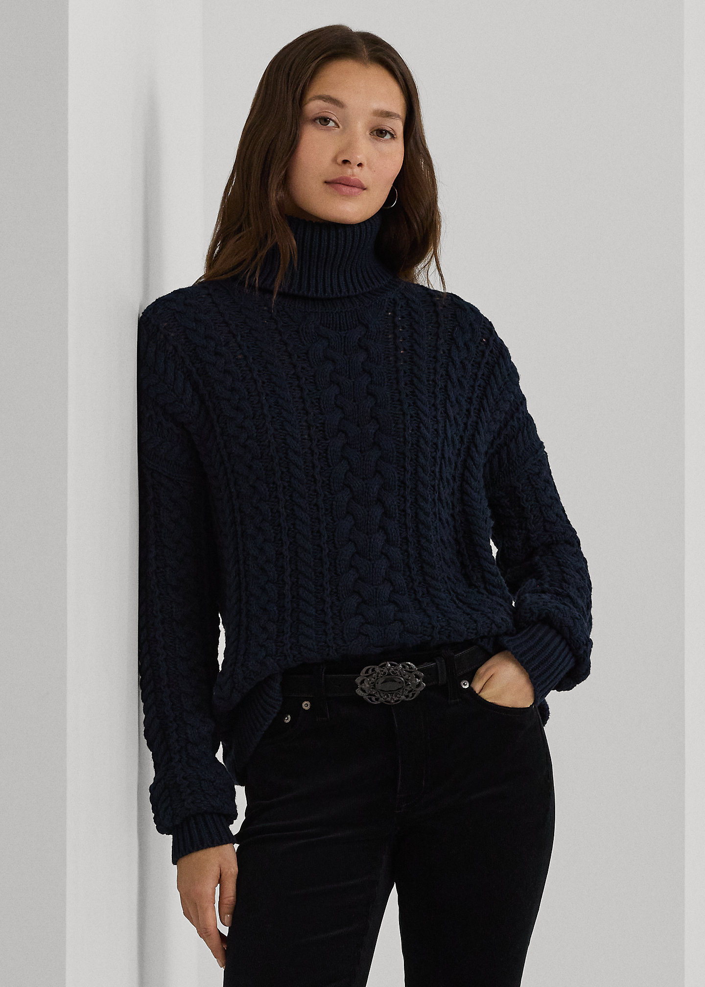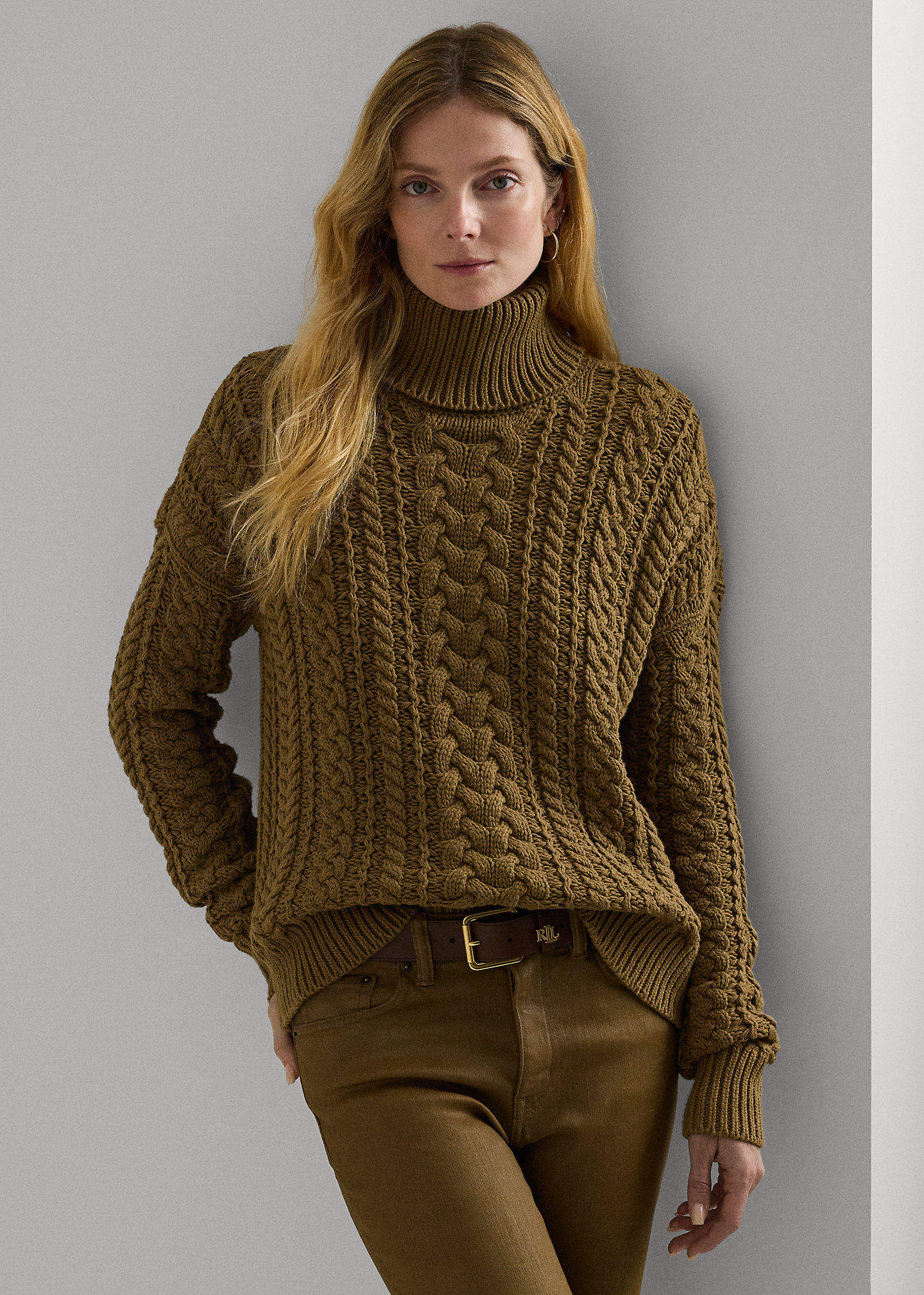 Cable-Knit Cotton-Blend Turtleneck