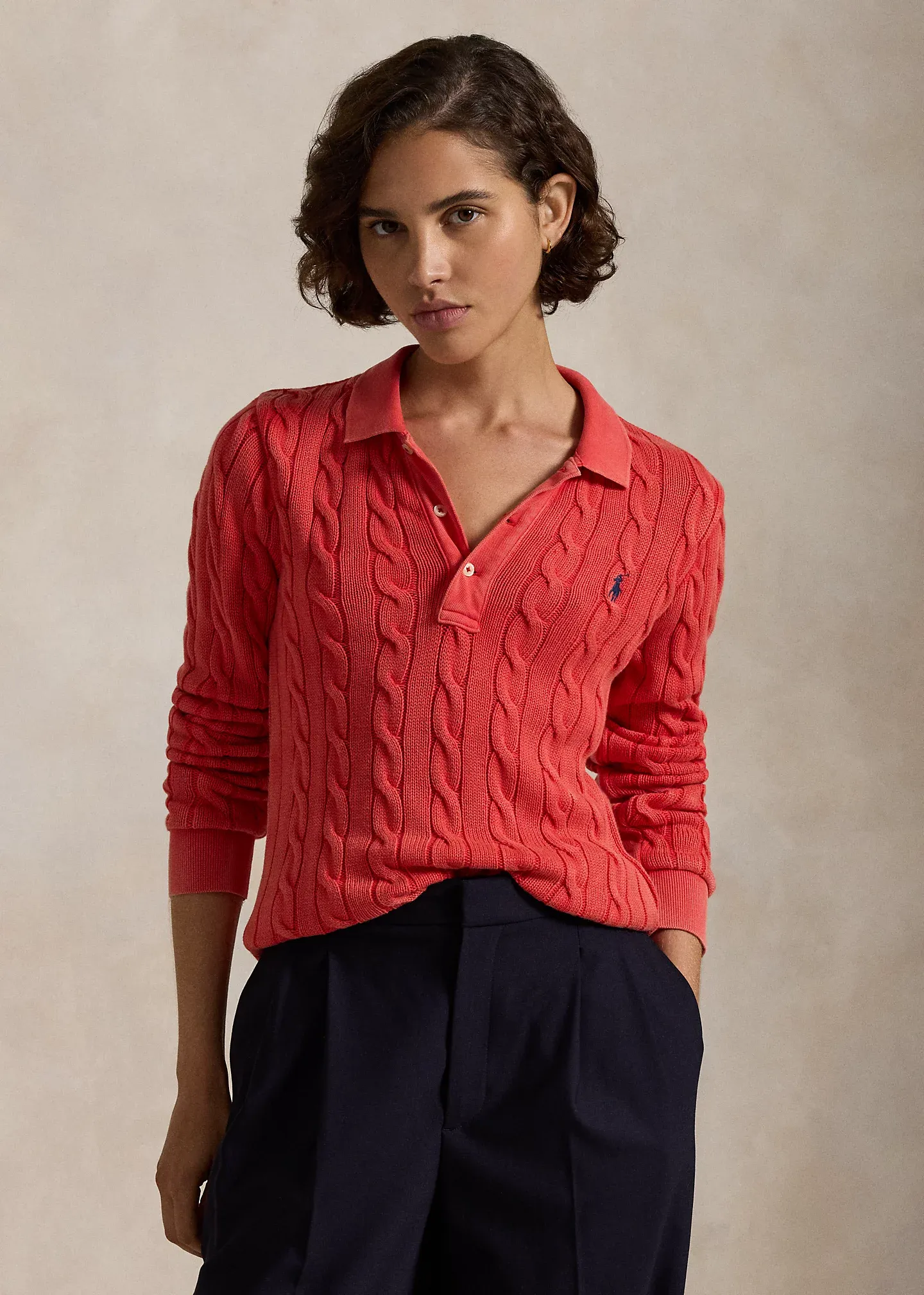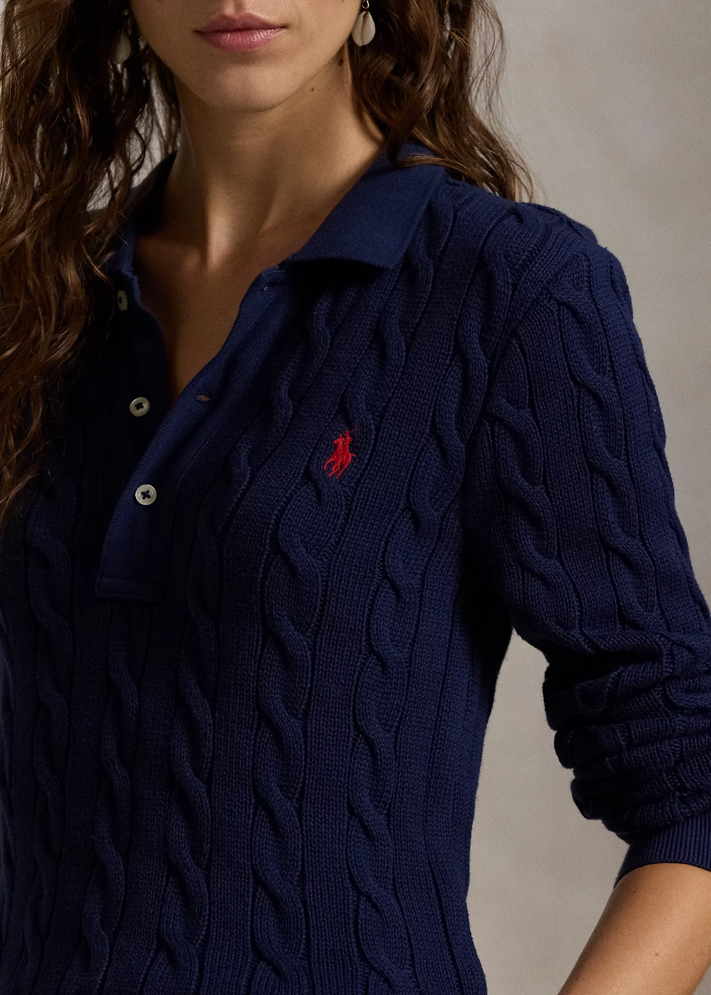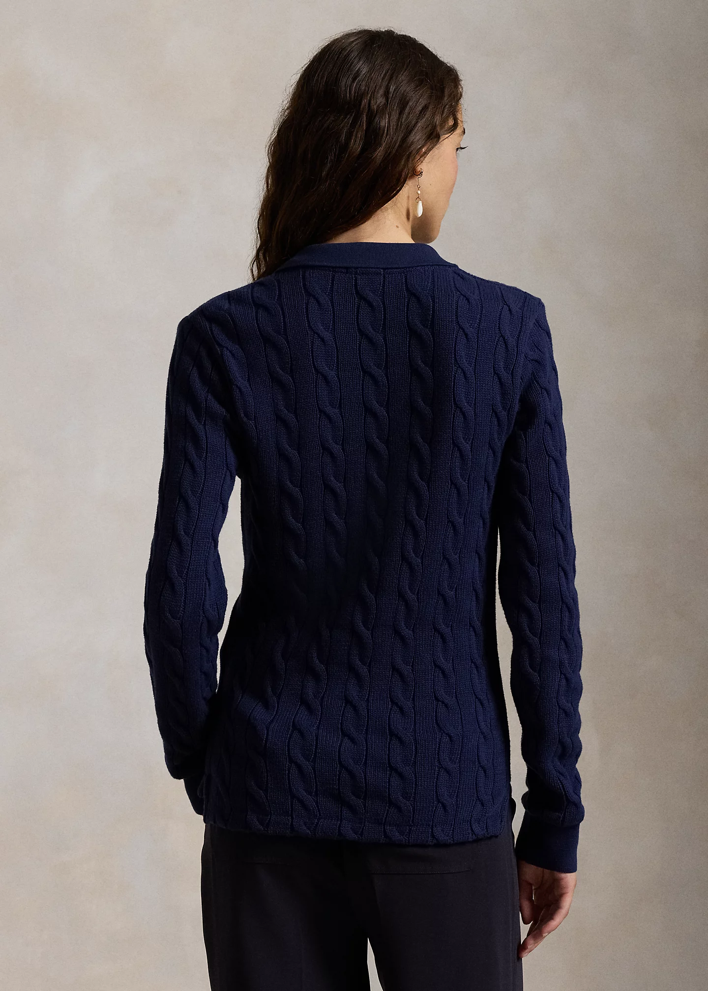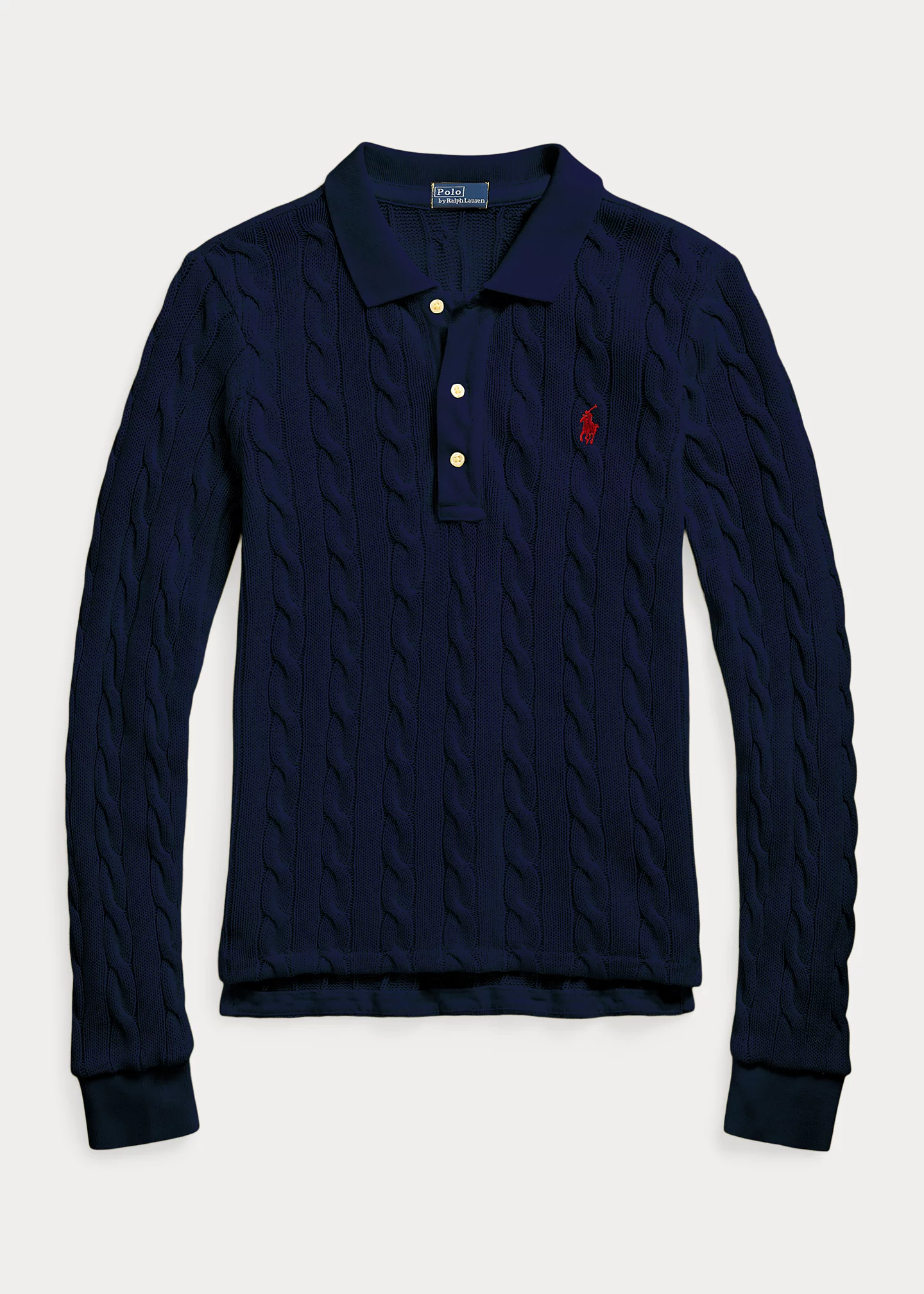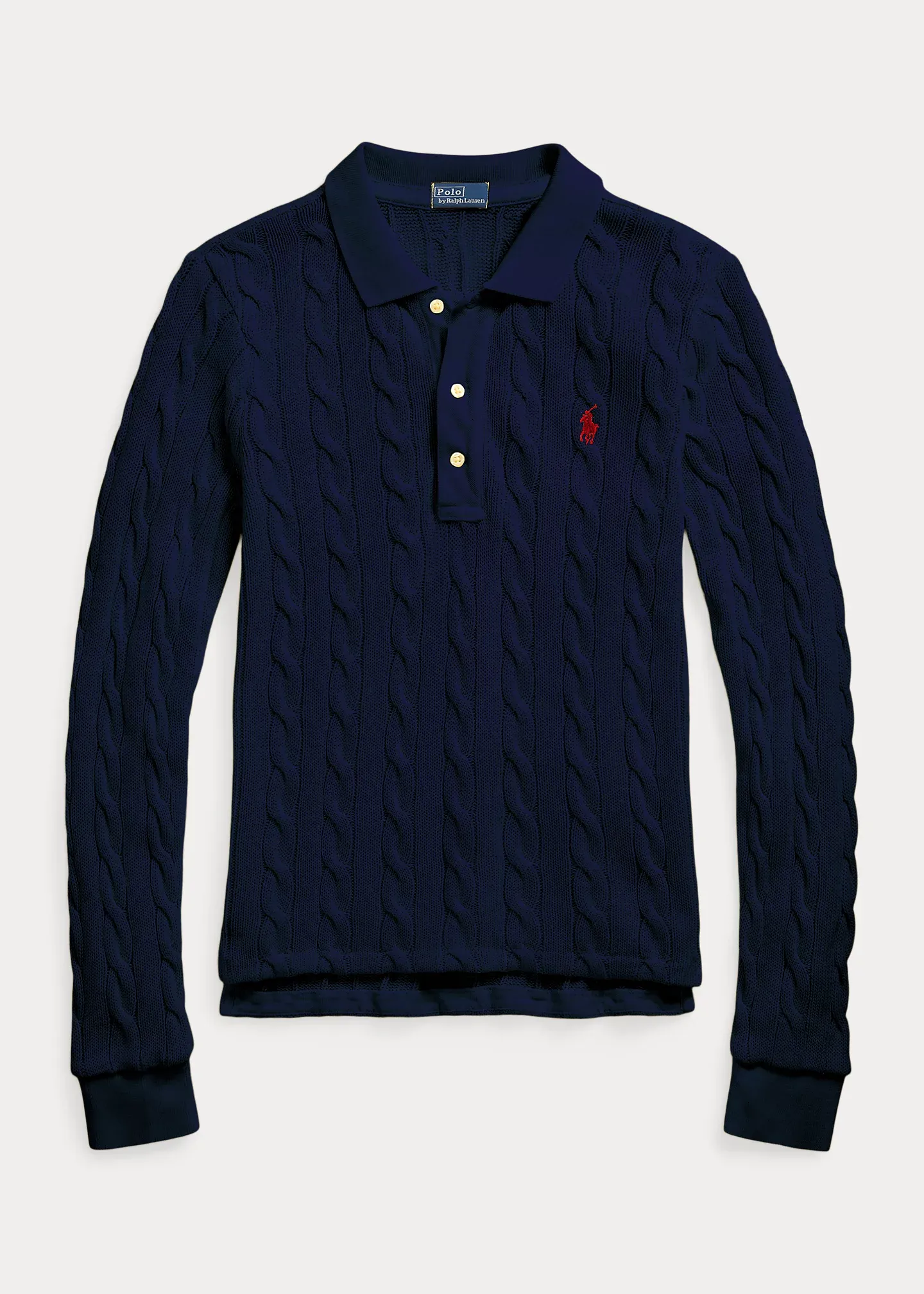 Cable-Knit Cotton Long-Sleeve Polo Shirt