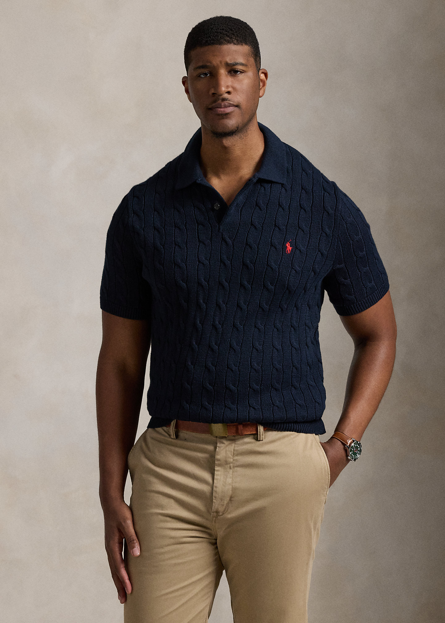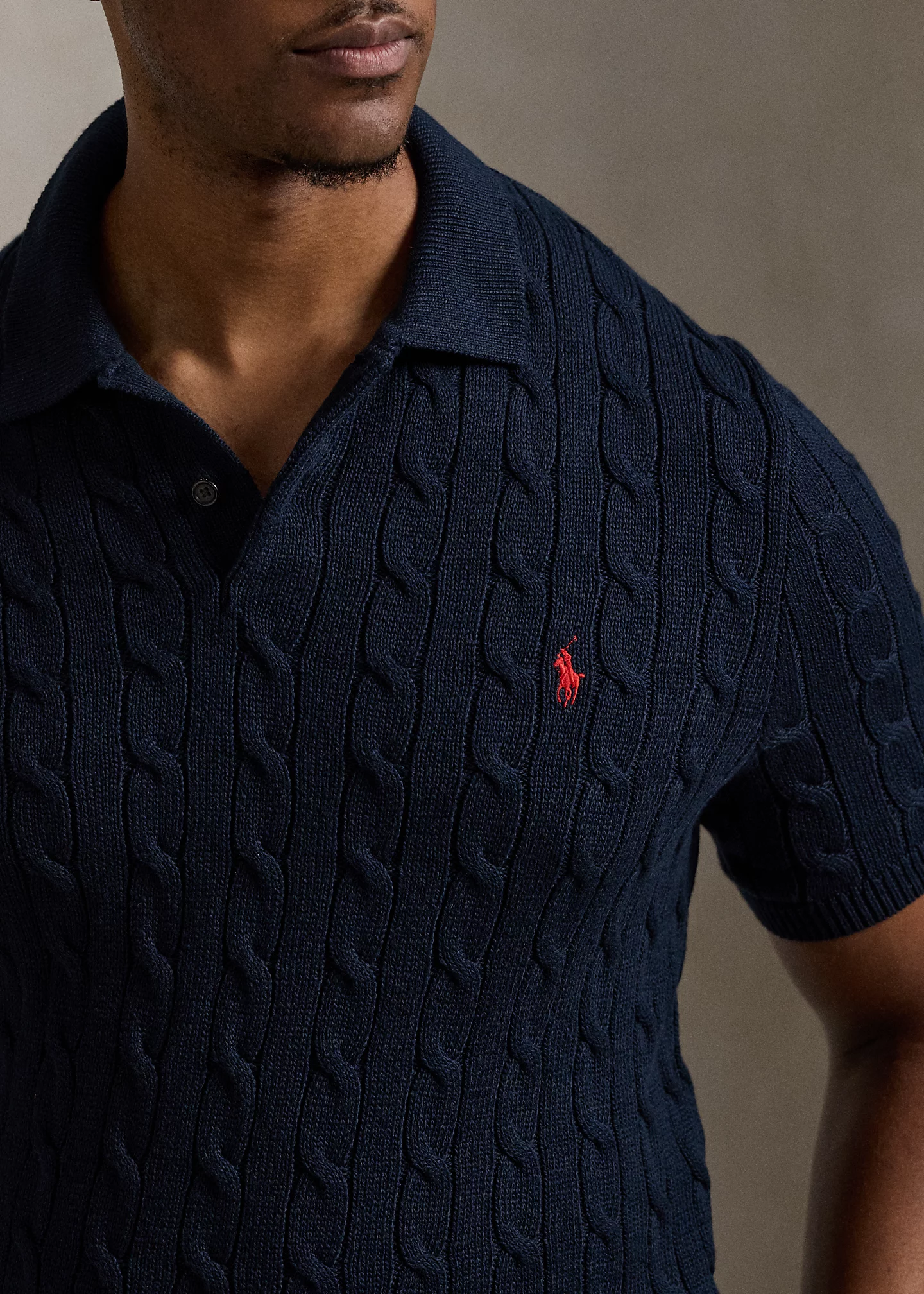 Cable-Knit Cotton Polo-Collar Sweater