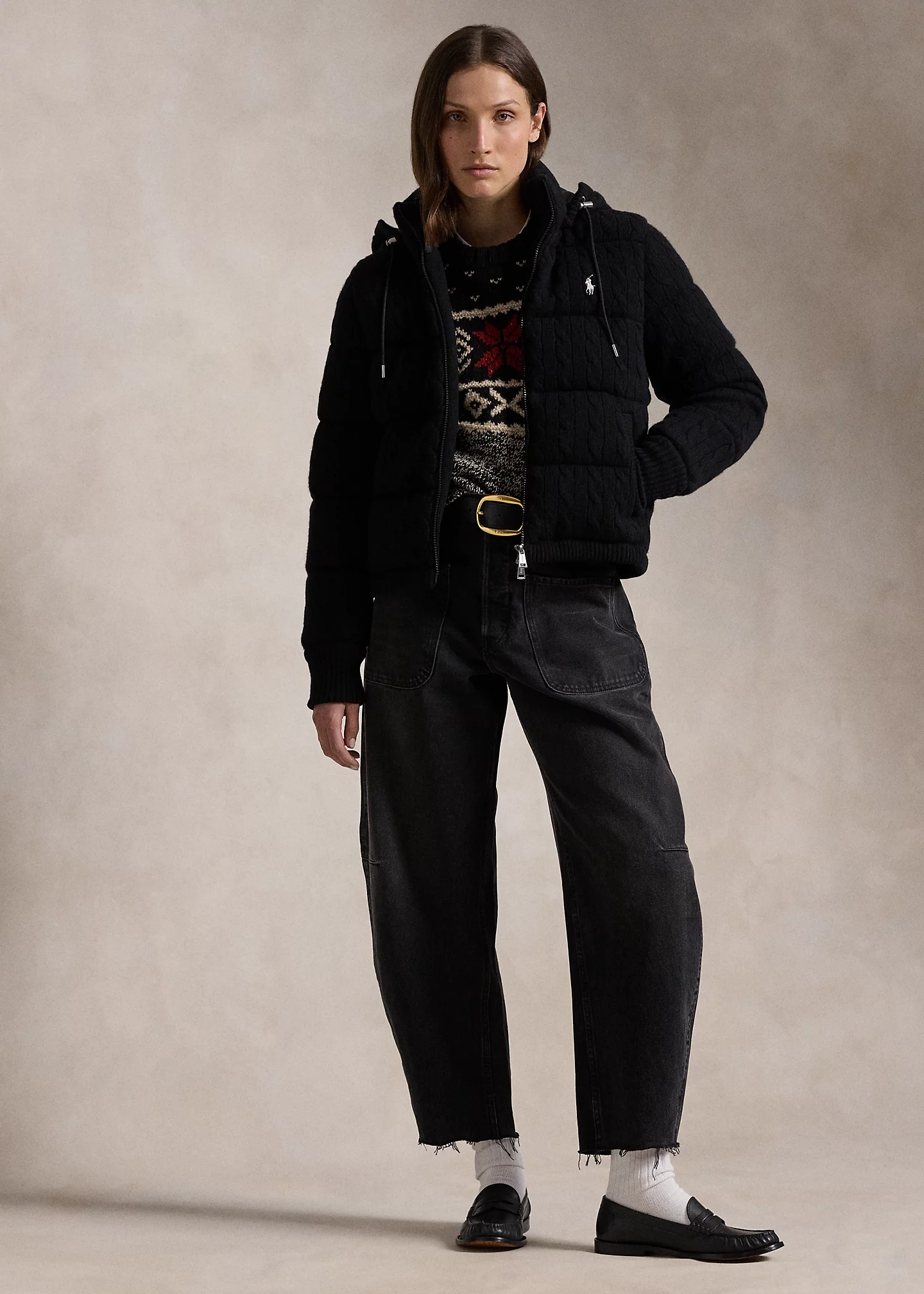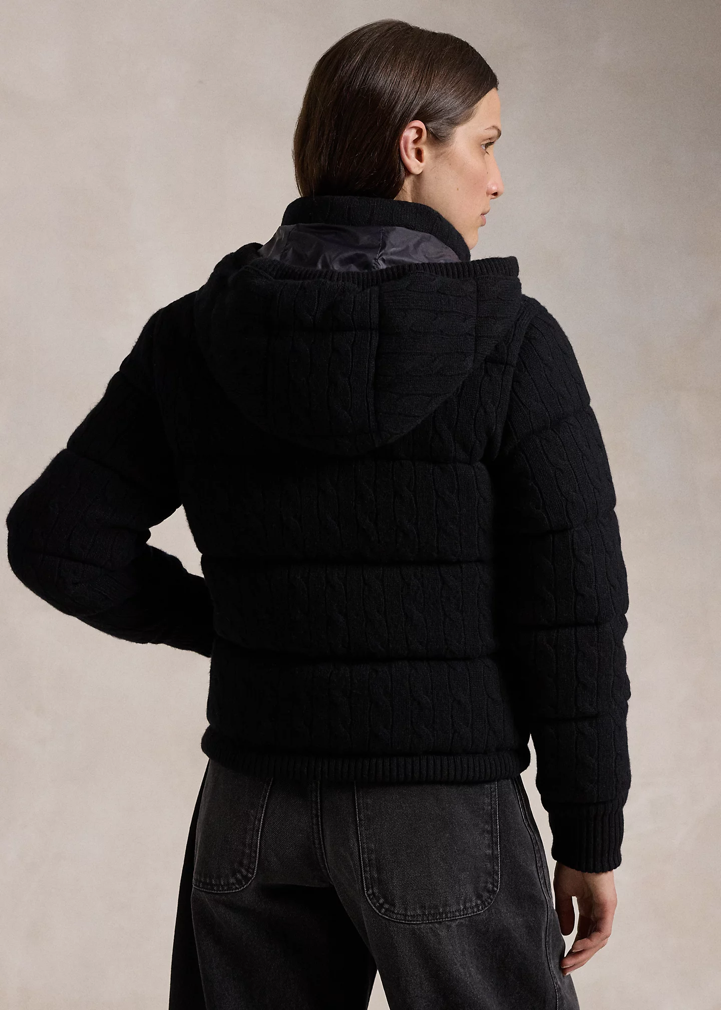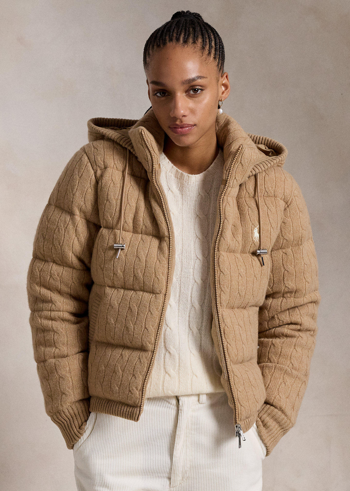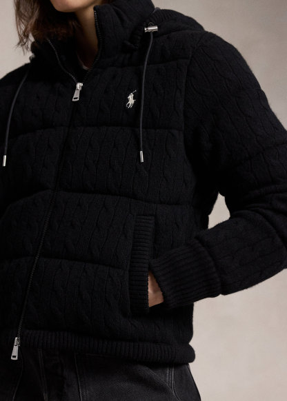 Cable-Knit Hooded Down Coat