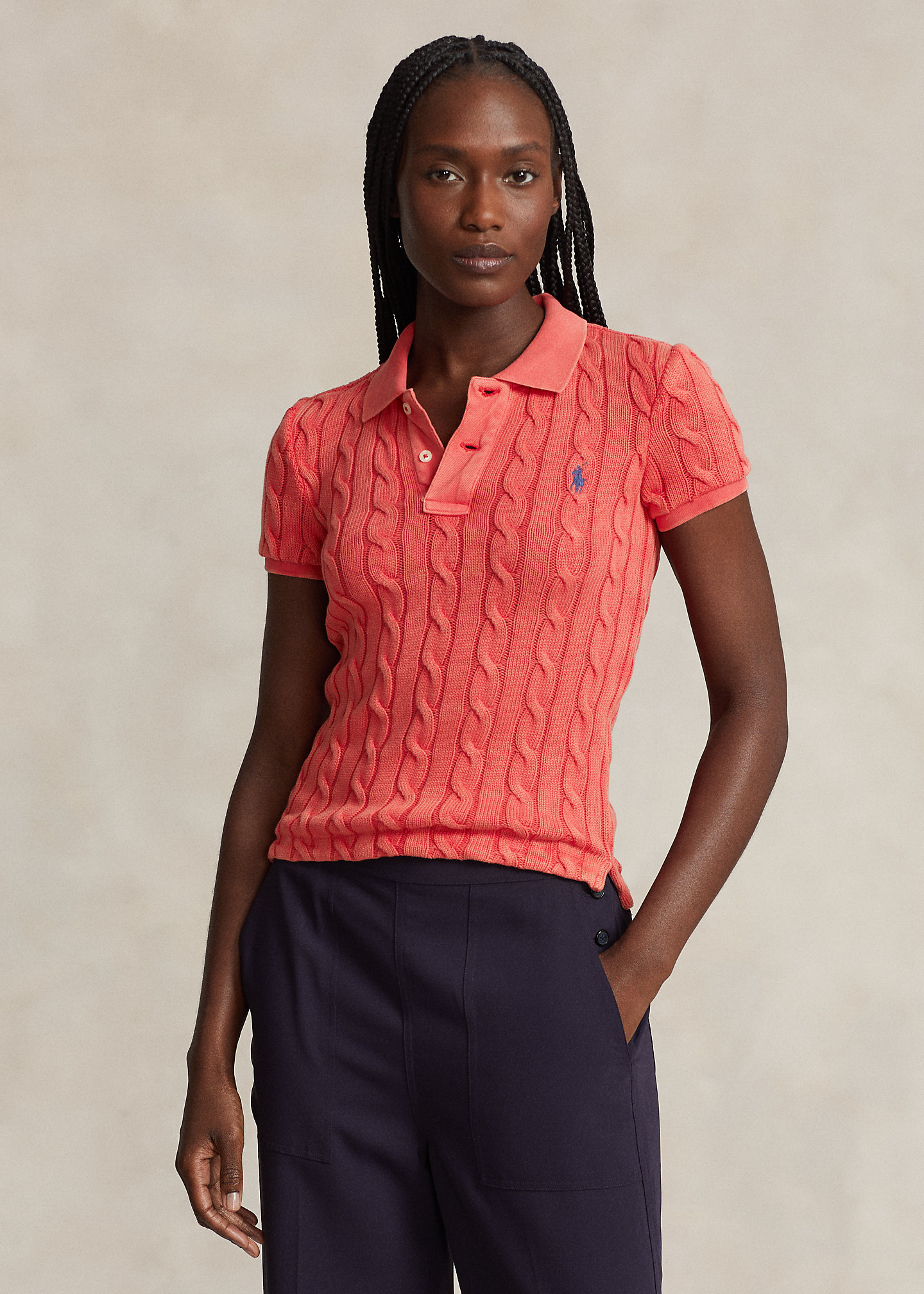 Cable-Knit Polo Shirt