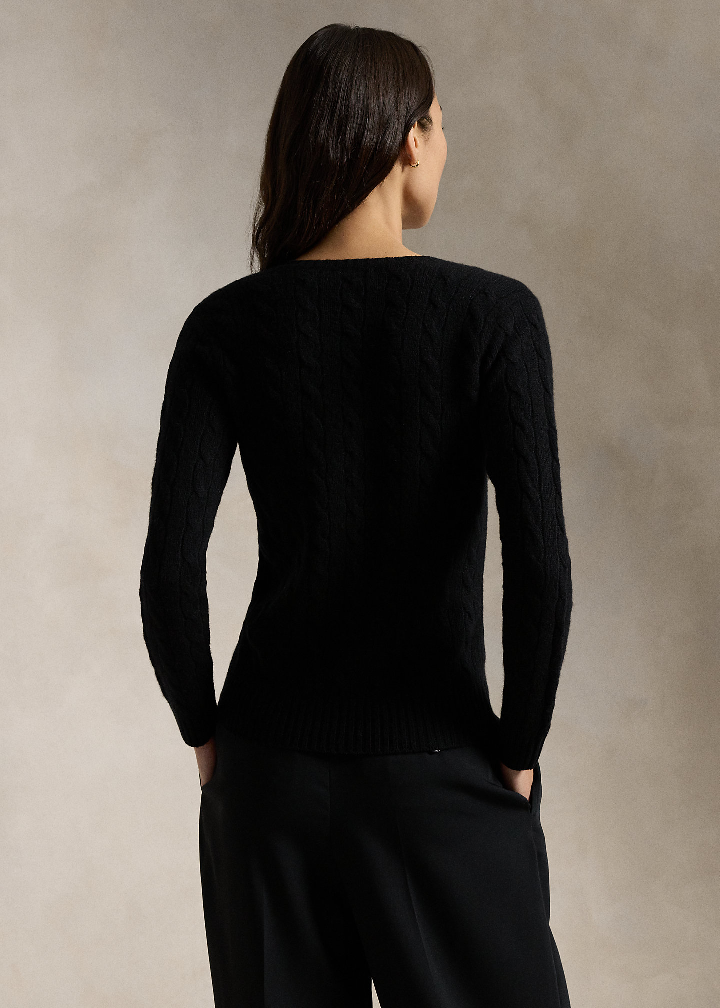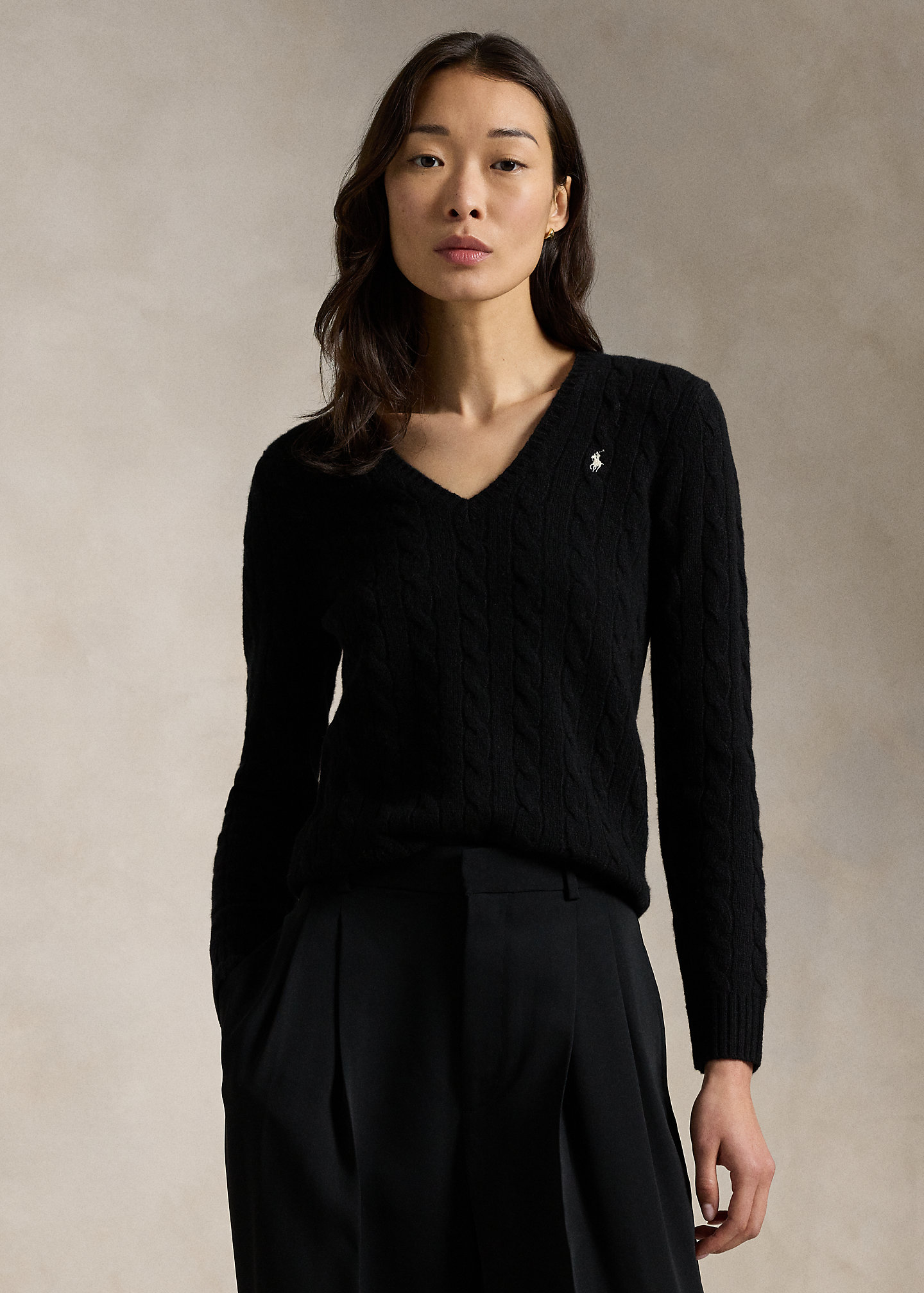 Cable-Knit Wool-Cashmere V-Neck Sweater