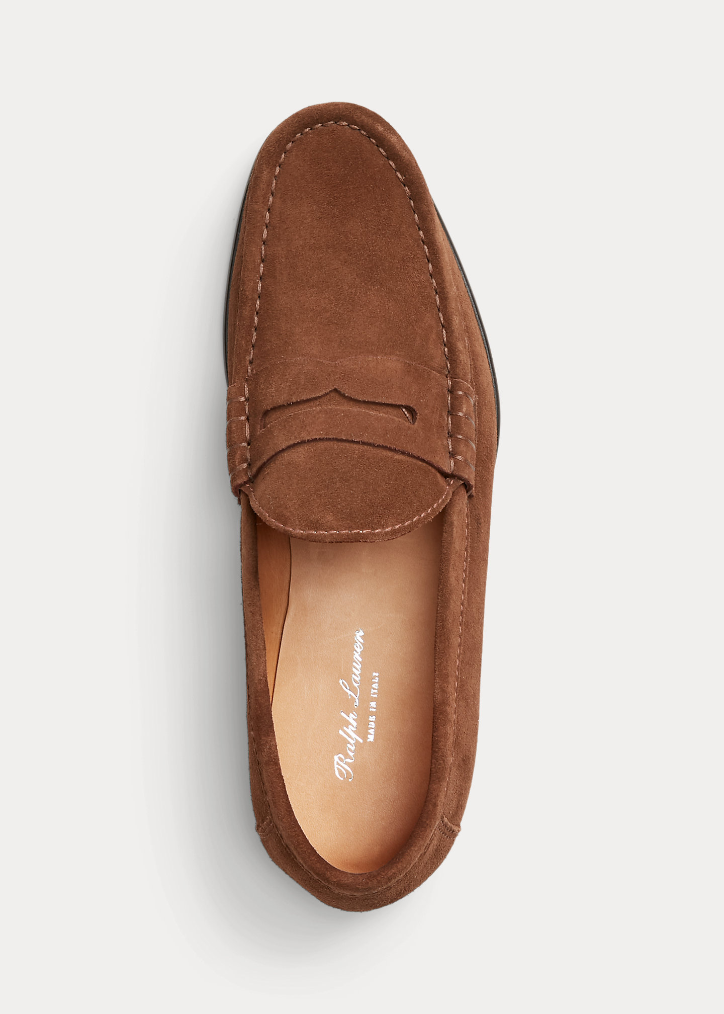 - Slip-on styling. Elongated penny tab at the vamp.