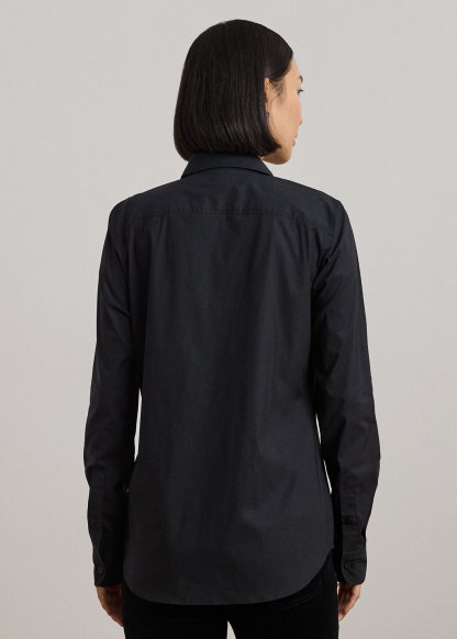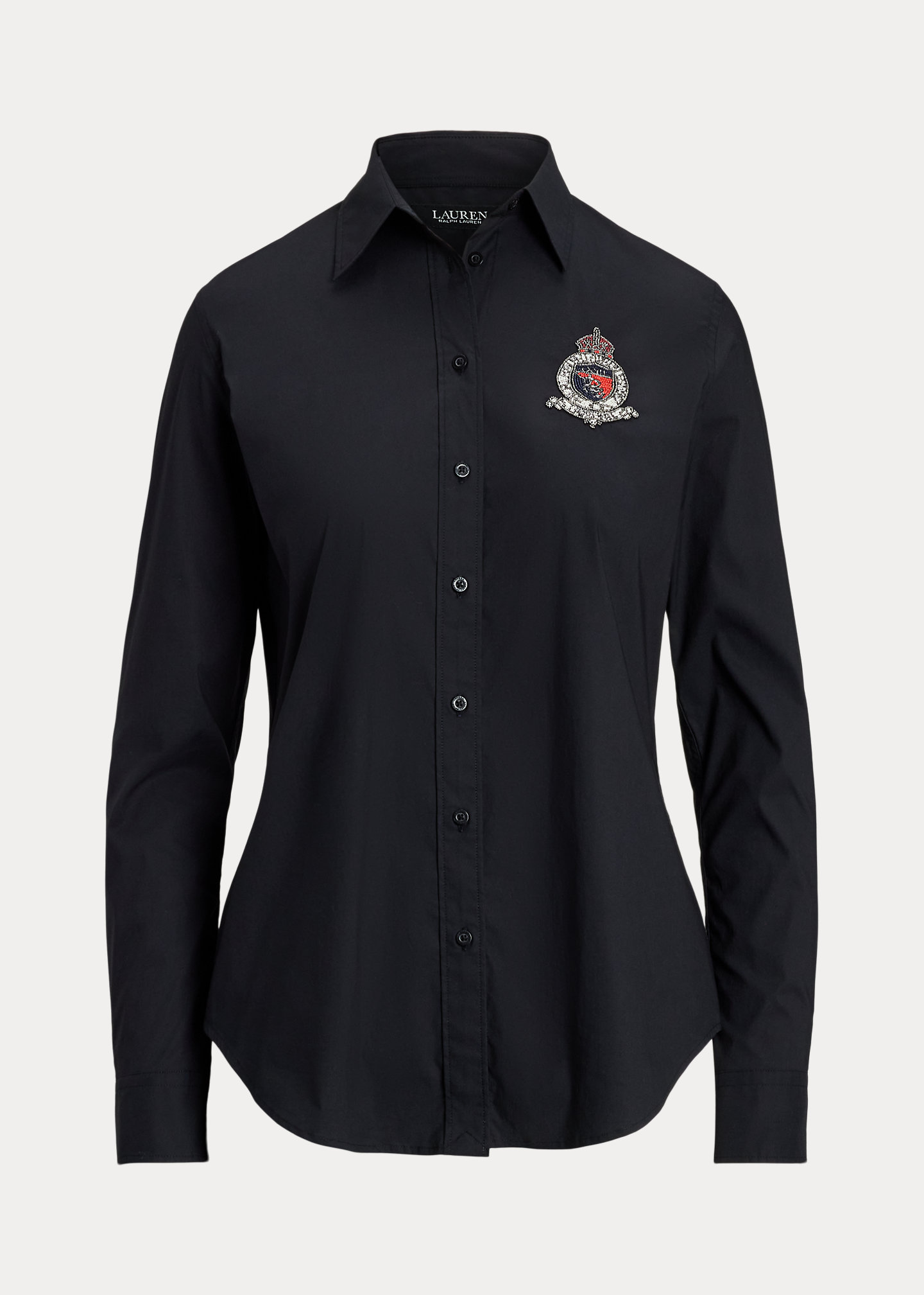 - Point collar. Buttoned placket. “Lauren Ralph Lauren”–engraved buttons.
