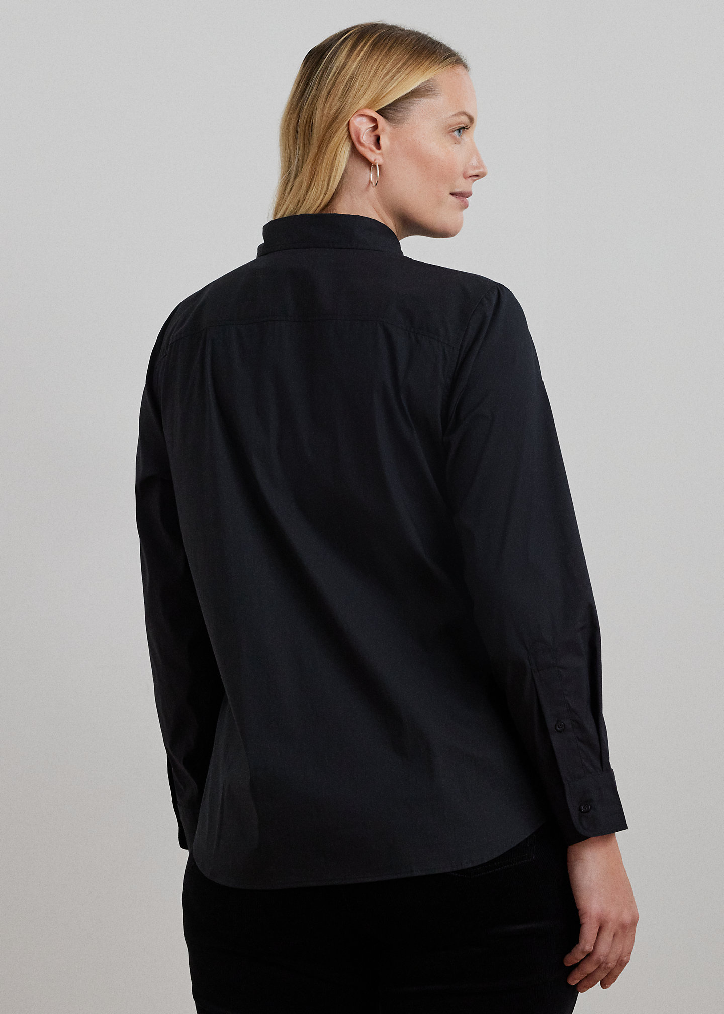 - Point collar. Buttoned placket. “Lauren Ralph Lauren”–engraved buttons.