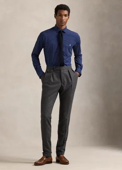 - Split pleated back yoke ensures smooth, contoured shoulders.