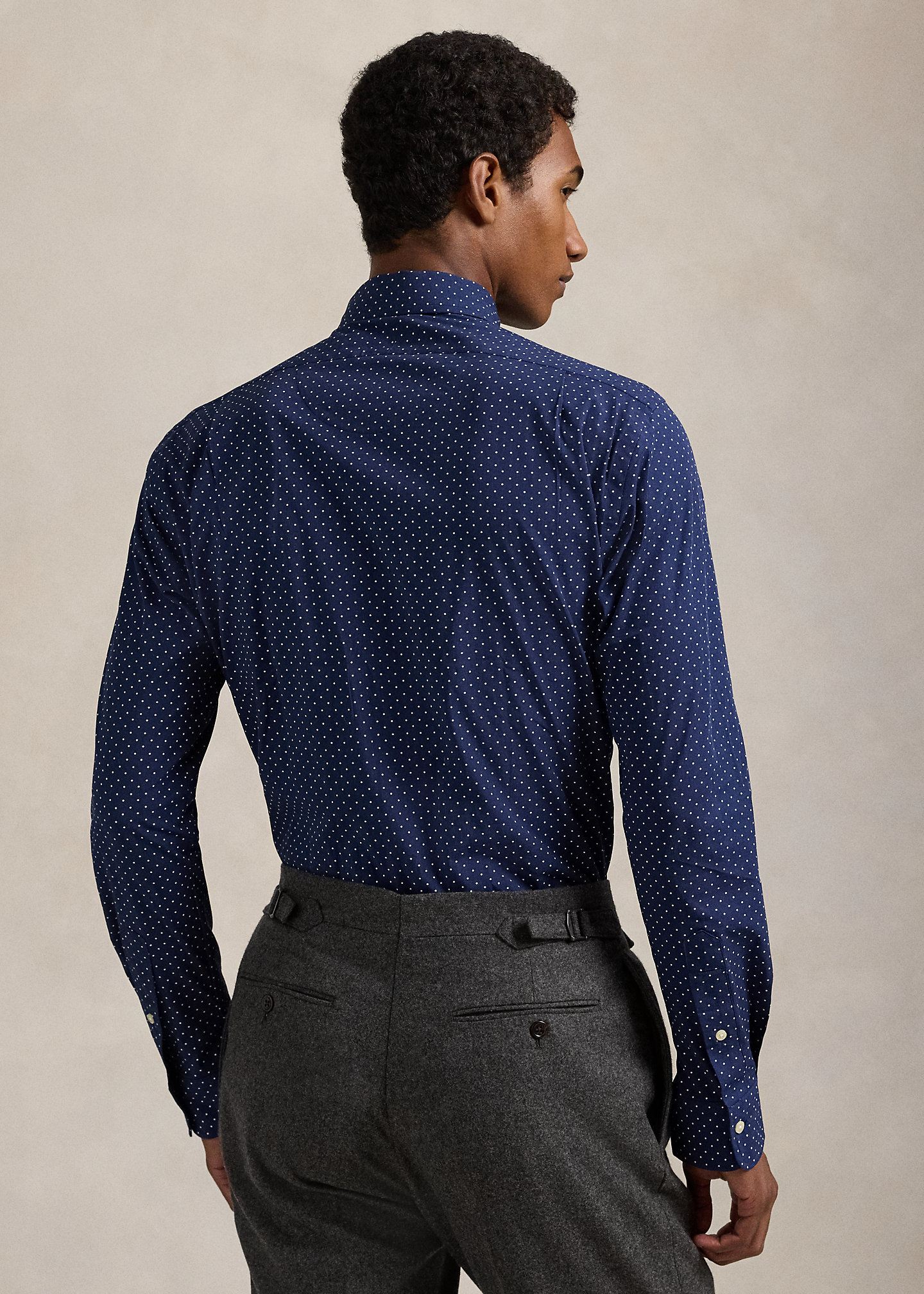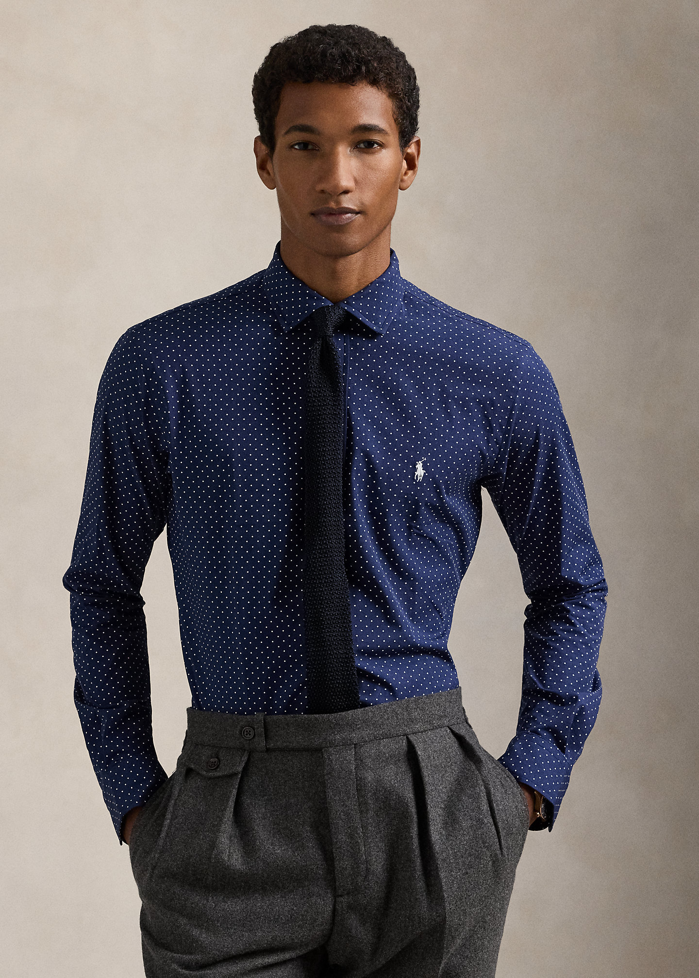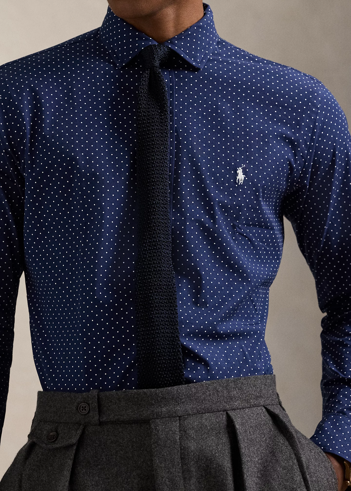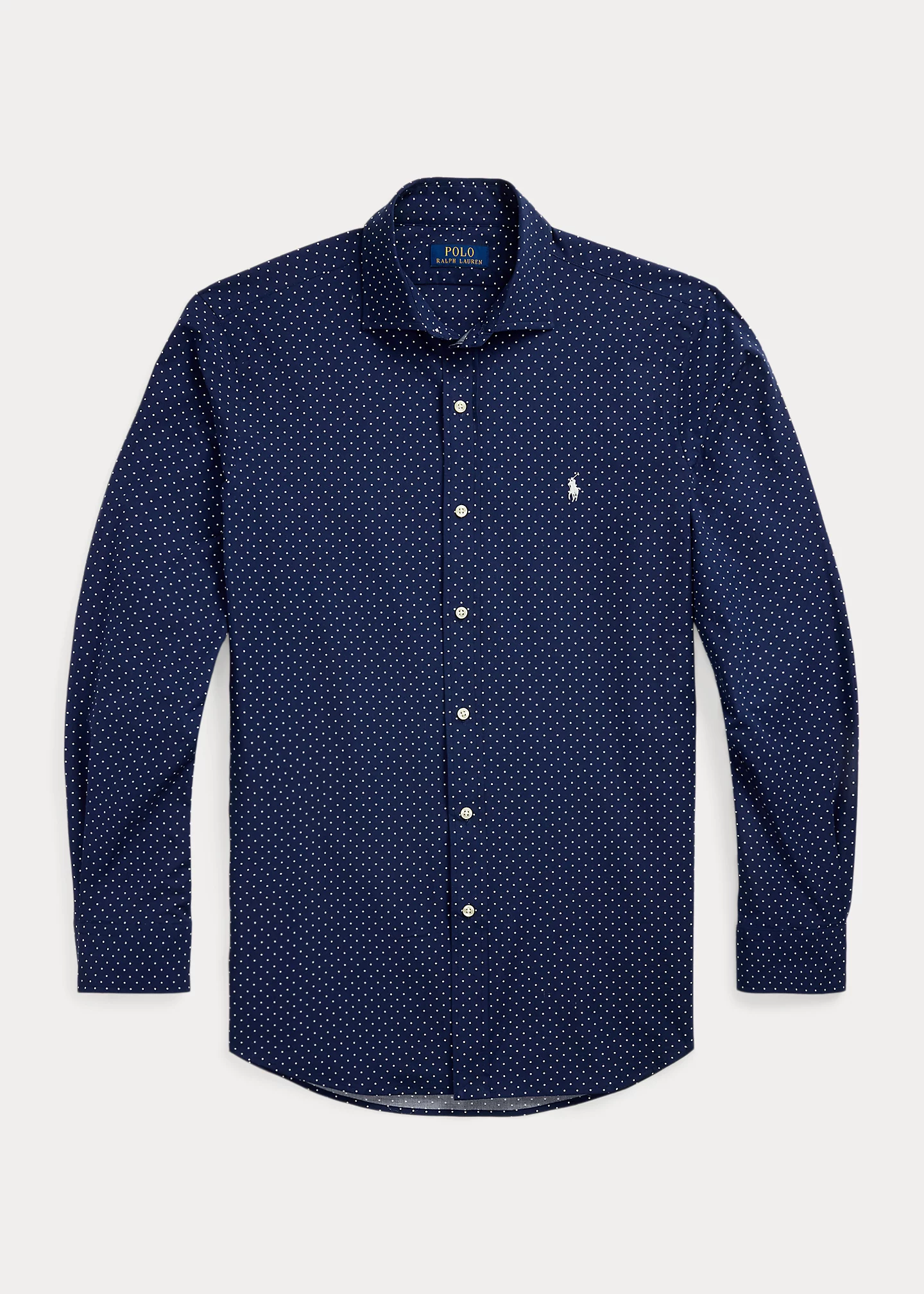 - Medium-spread collar. Signature collar stays. Buttoned placket. Long sleeves with buttoned barrel cuffs.