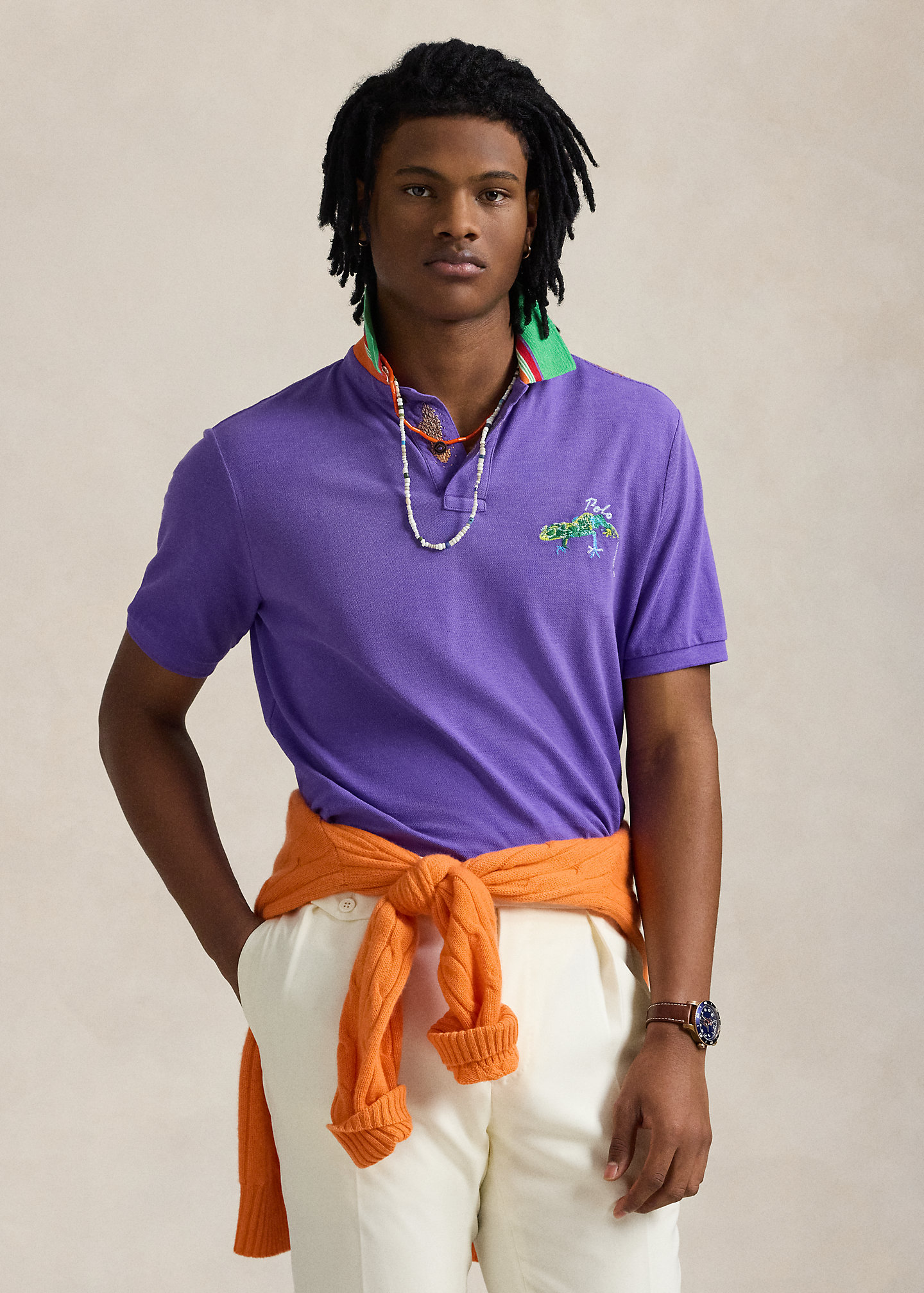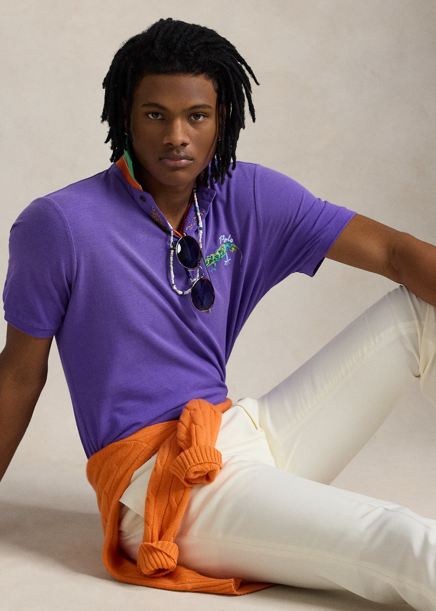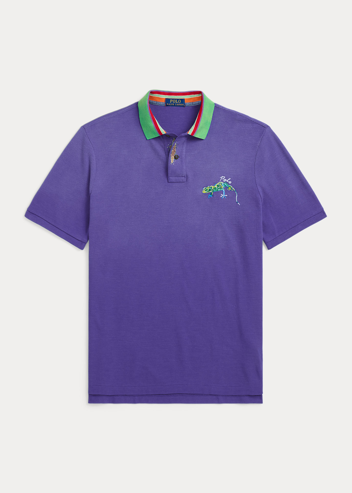 - Lizard and "Polo" script embroidered at the left chest. Embroidered repairs throughout.