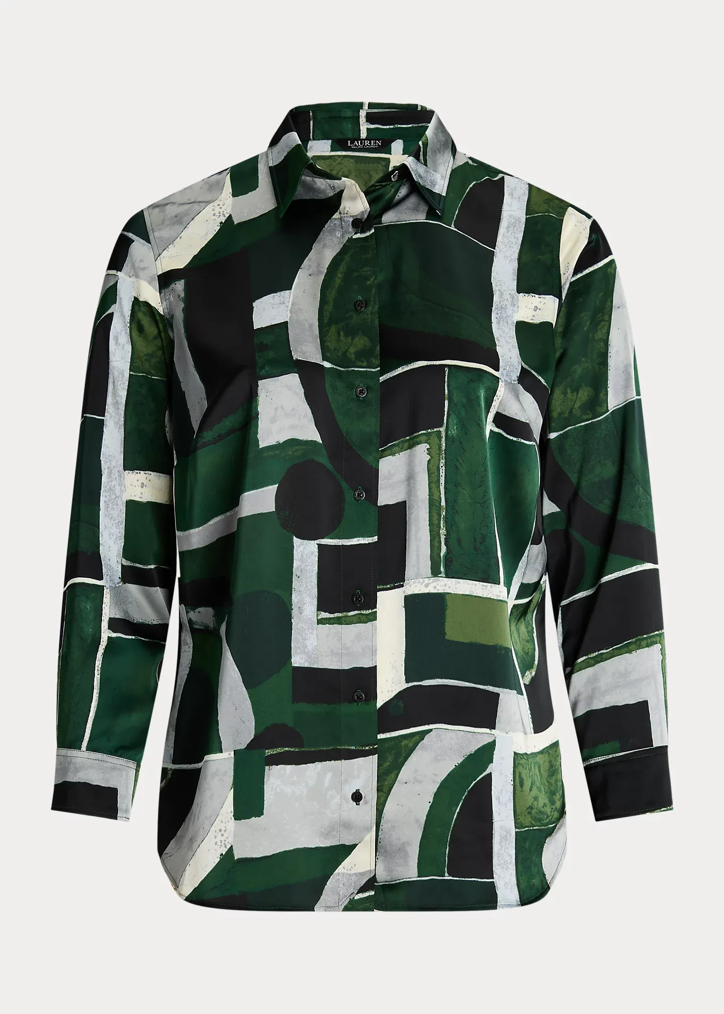 - Point collar. Buttoned placket. “Lauren Ralph Lauren”–engraved buttons.