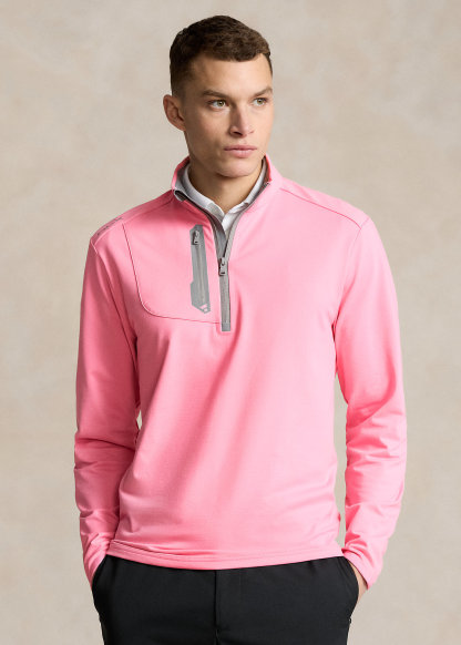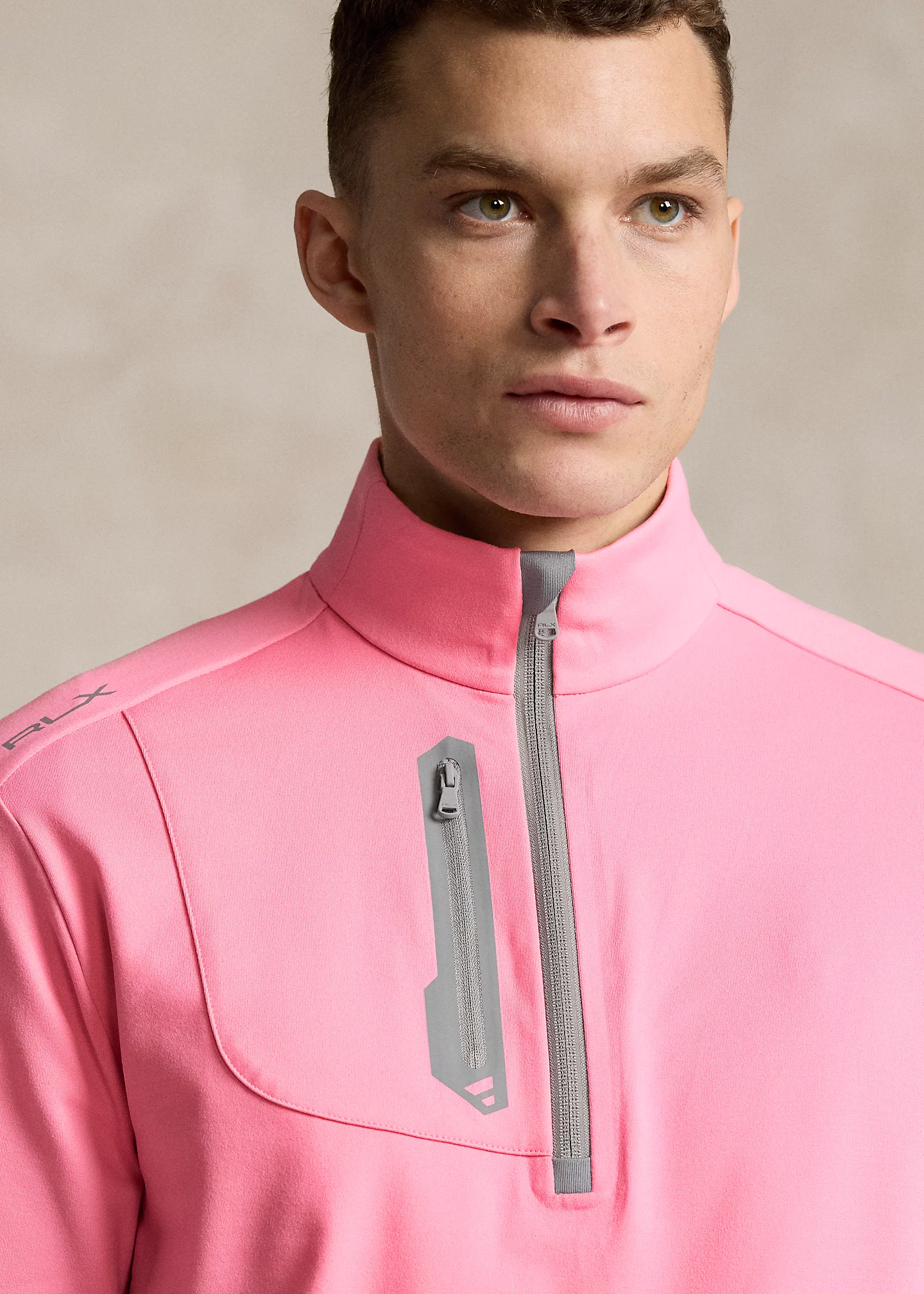 - Mockneck. Quarter-zip placket with a flap at the top that prevents chafing.
