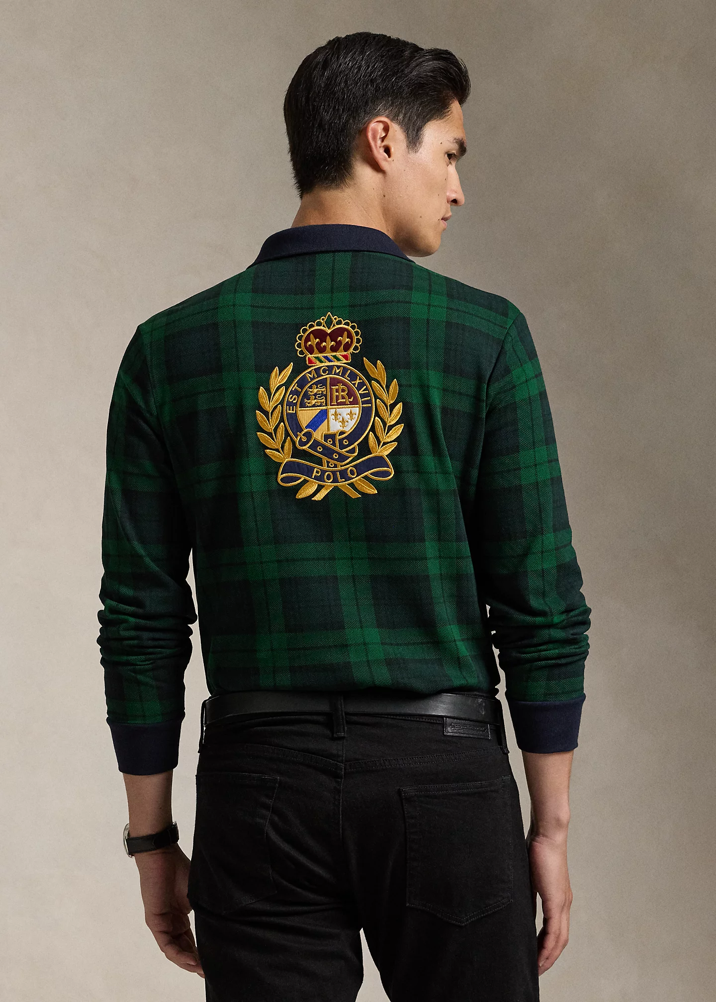 - Polo Crest embroidered and appliquéd at the center back. Tennis tail.