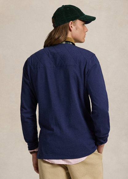 - Diamond-quilted front and back yoke. Long sleeves with ribbed cuffs. Even vented hem.