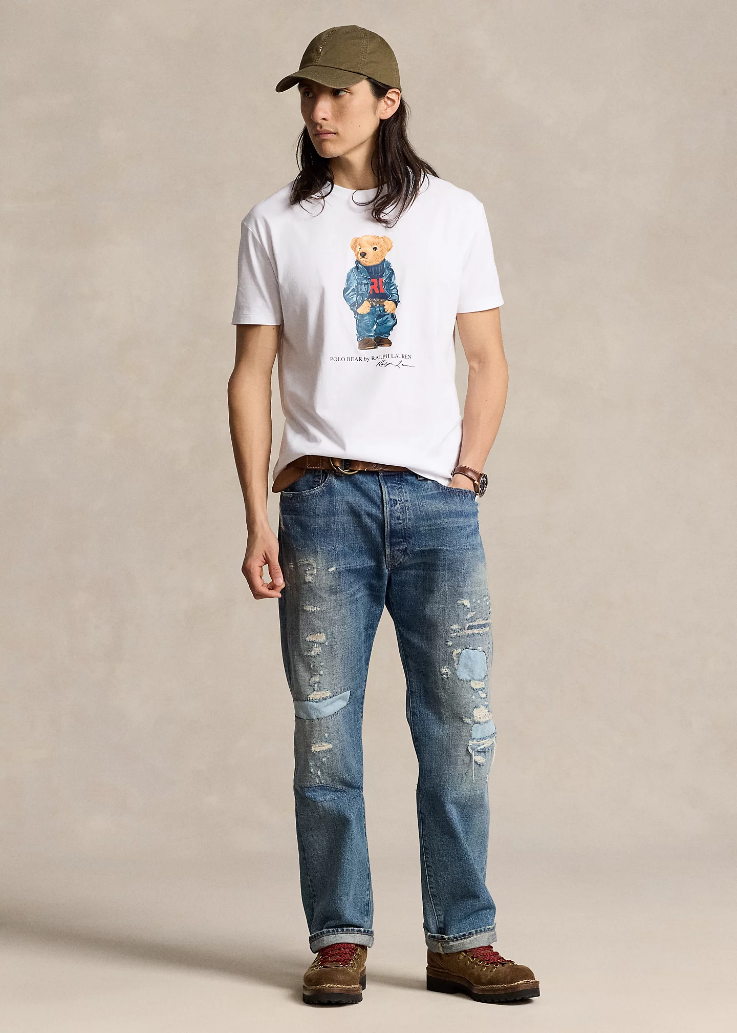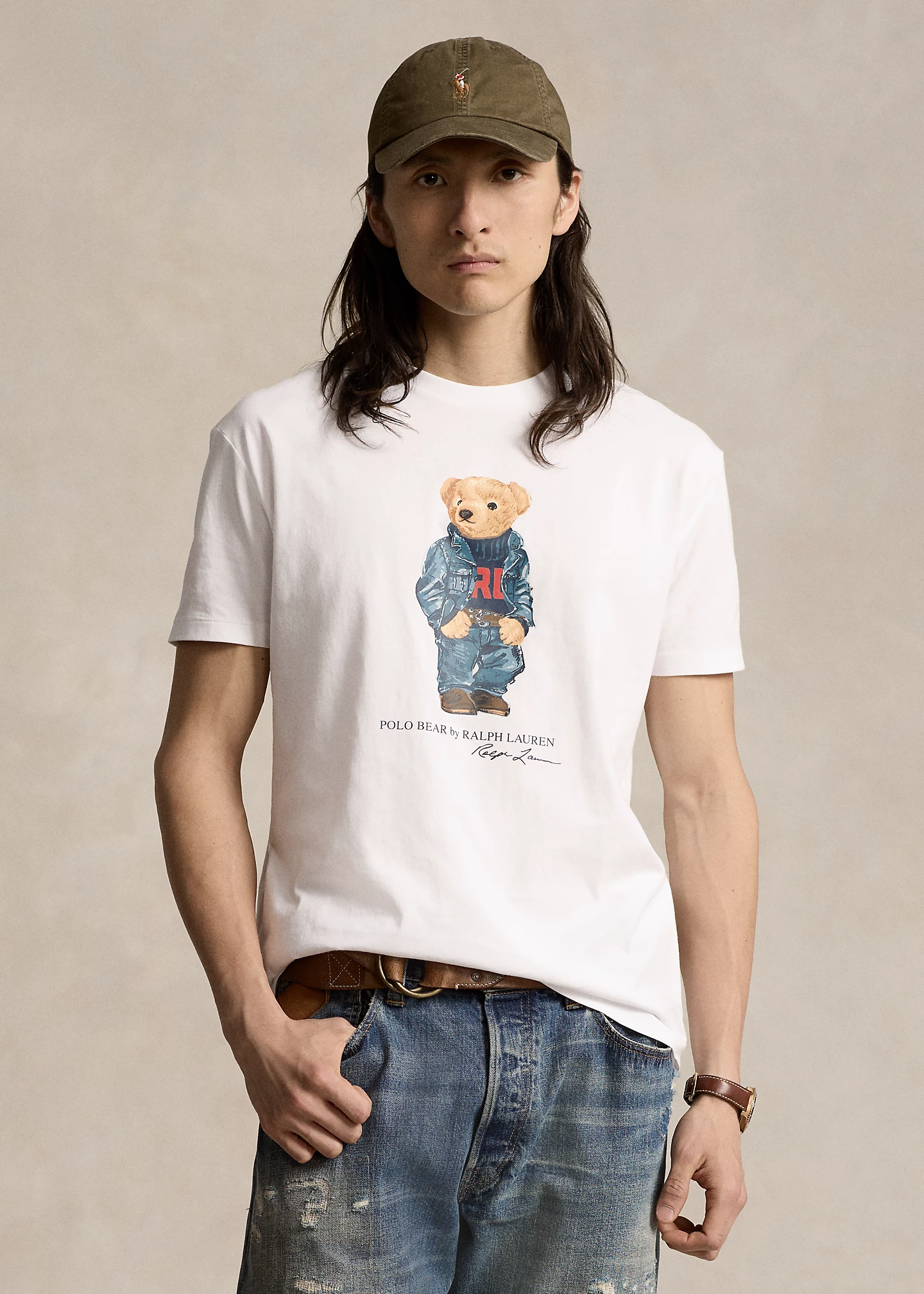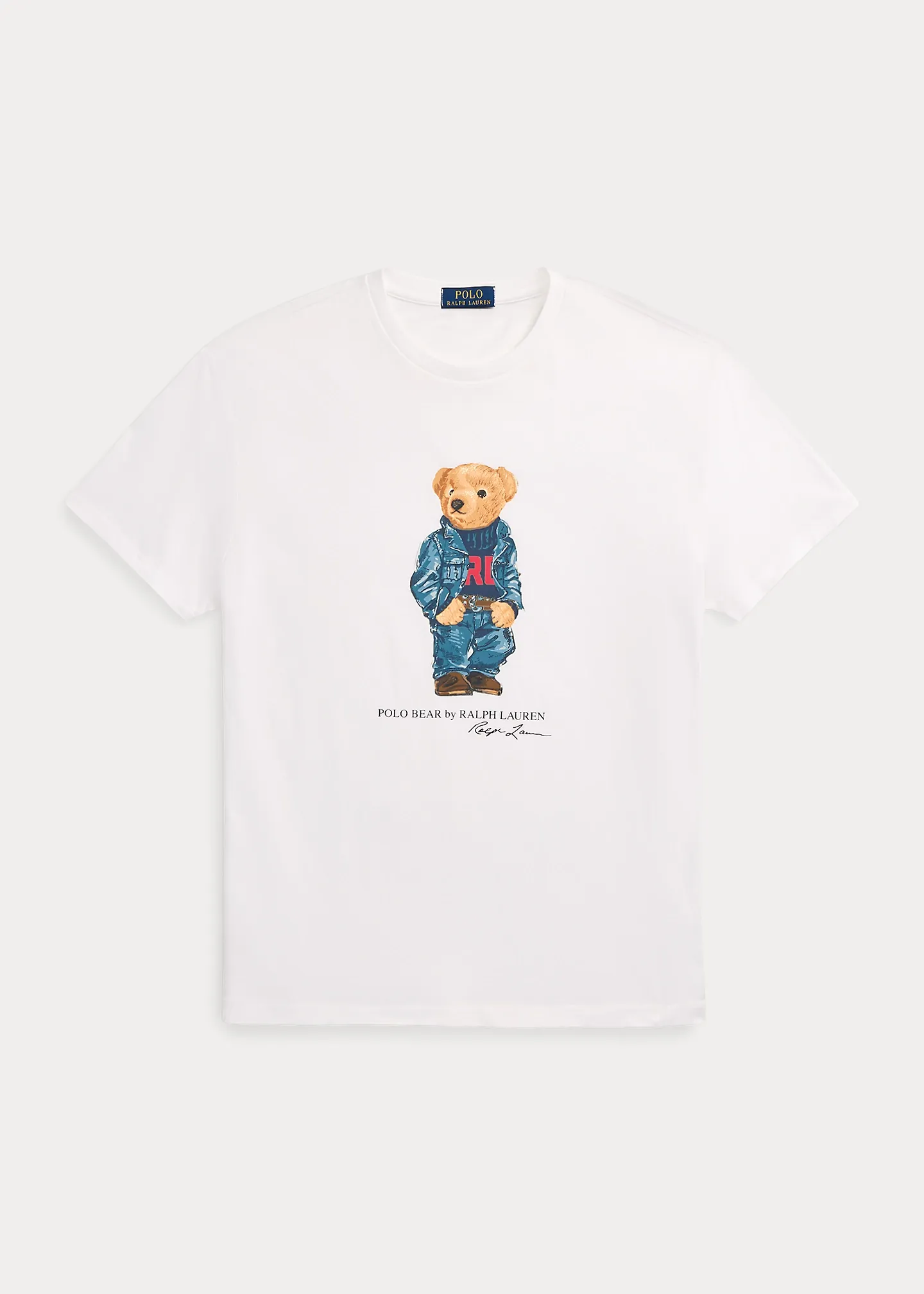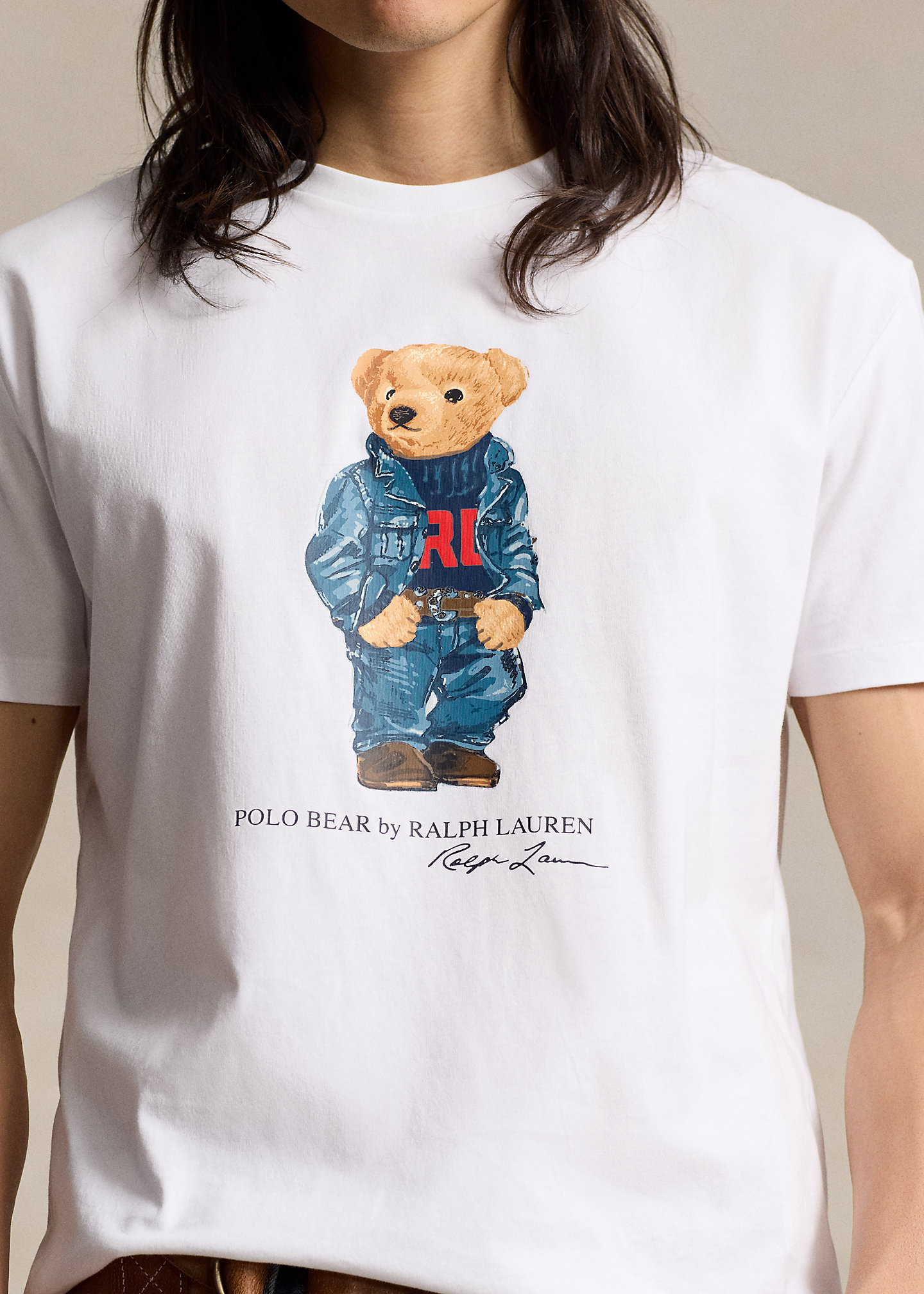 - Polo Bear, "Polo Bear by Ralph Lauren," and "Ralph Lauren" script printed at the center front.