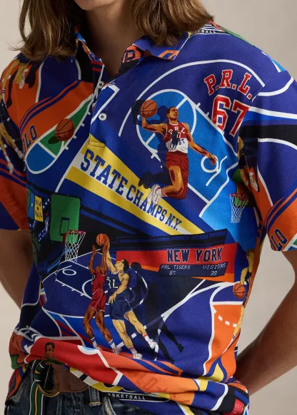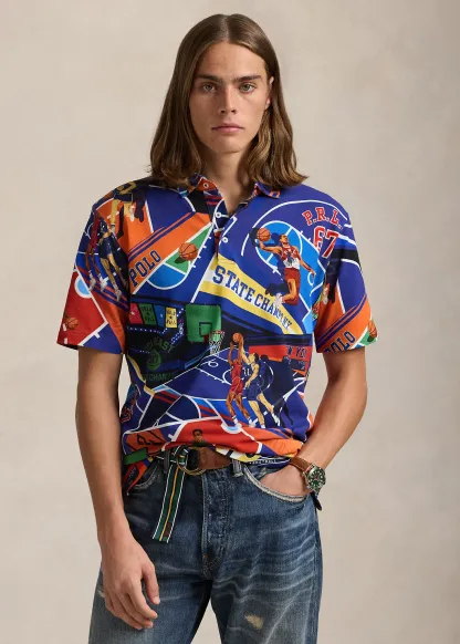 Classic Fit Print Mesh Polo Shirt