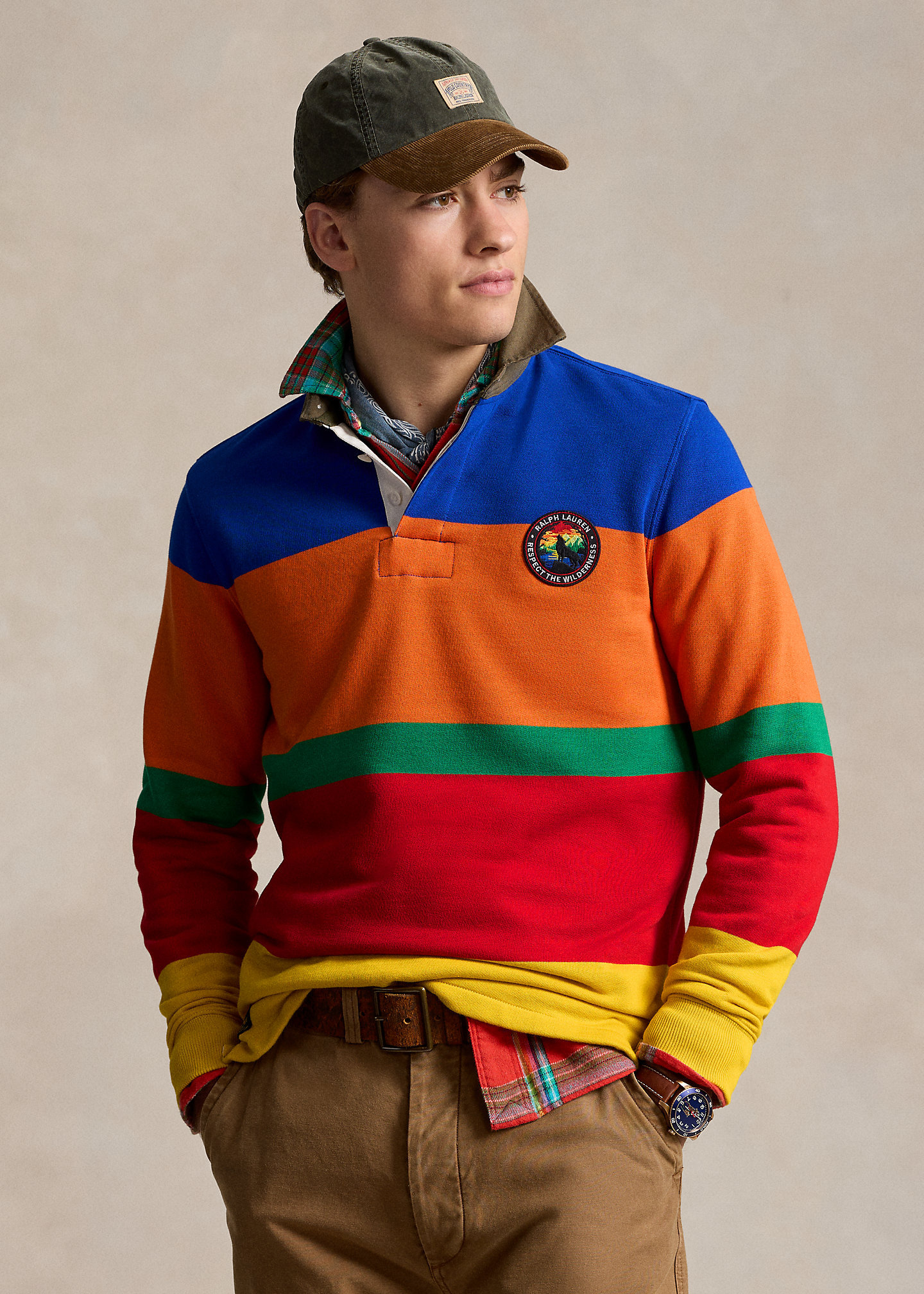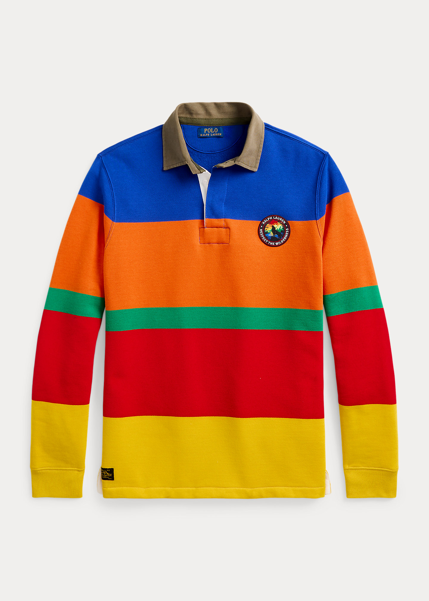 - Long sleeves with ribbed cuffs. "Ralph Lauren Respect the Wilderness" patch at the left chest.