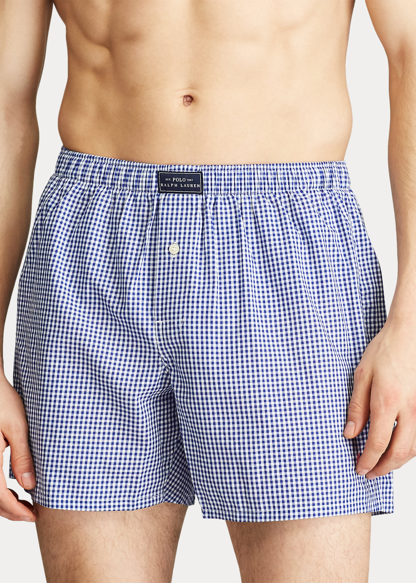 - Woven "Polo Ralph Lauren" label at front. Single-button fly.