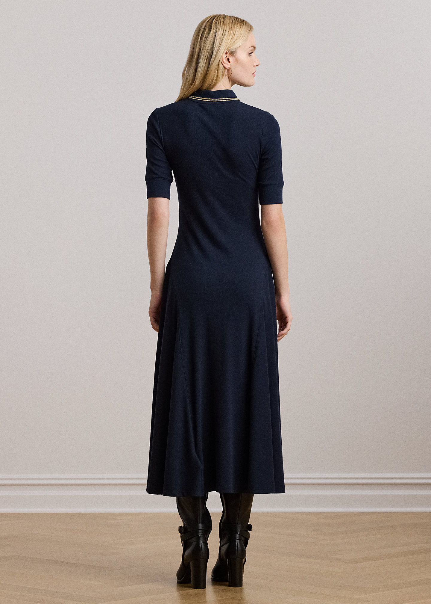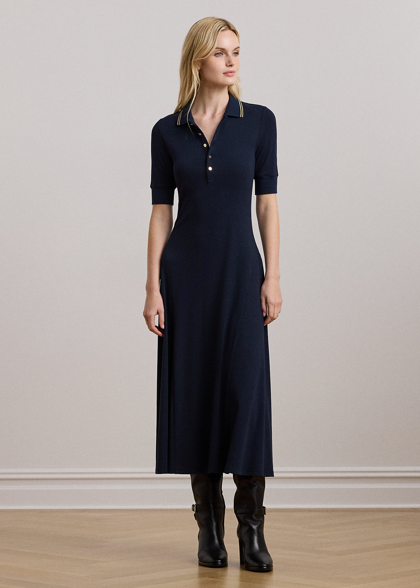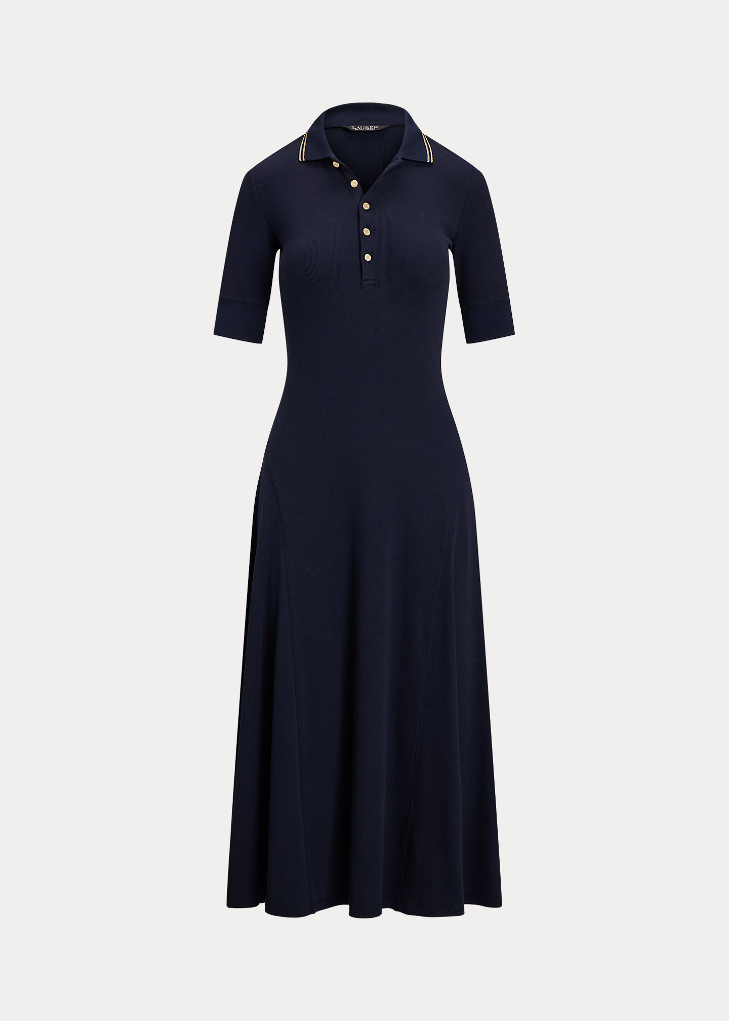 - Ribbed Polo collar. Buttoned quarter-placket. “LRL”-engraved metal buttons.