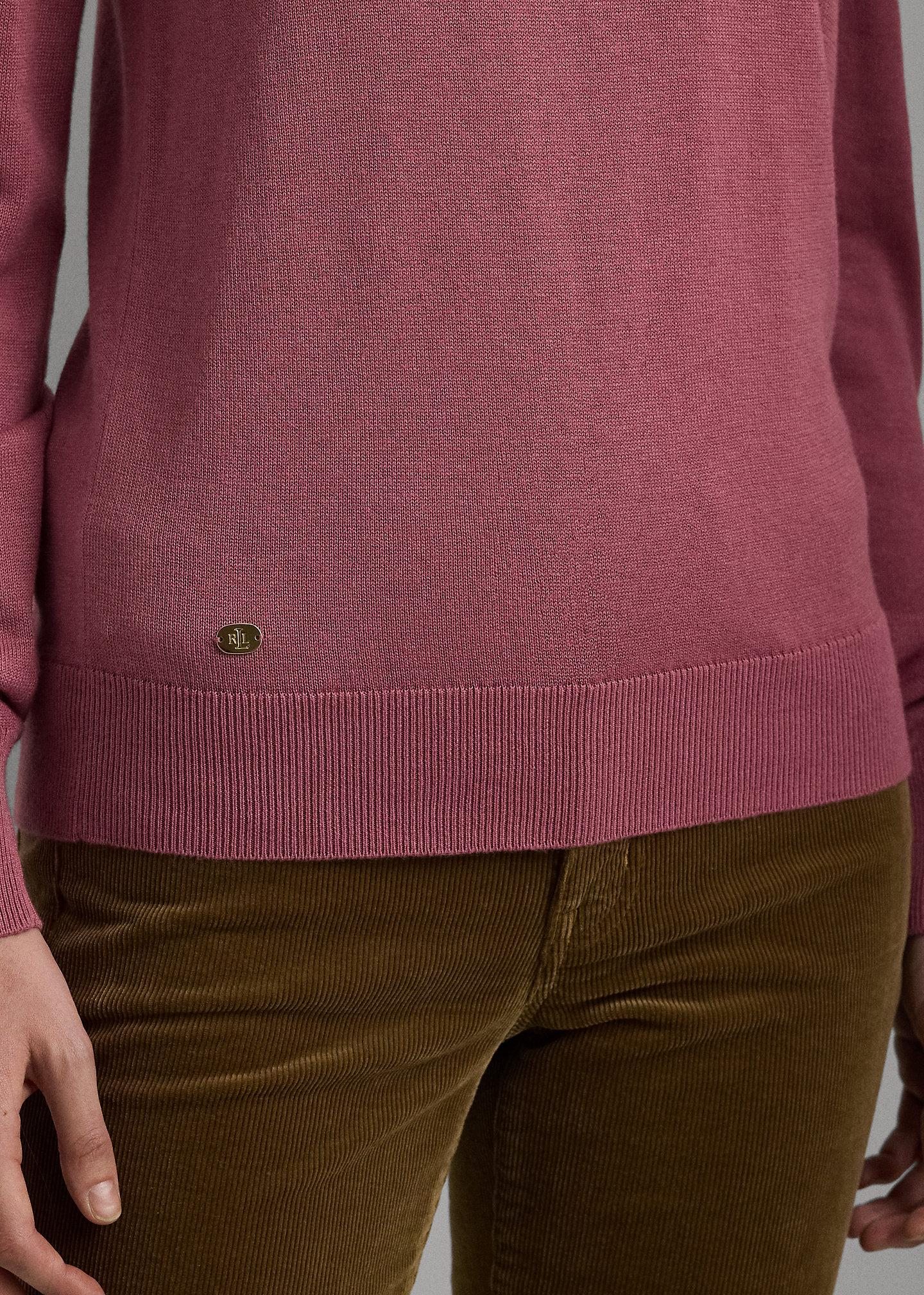 - Long sleeves with ribbed cuffs. Ribbed hem.