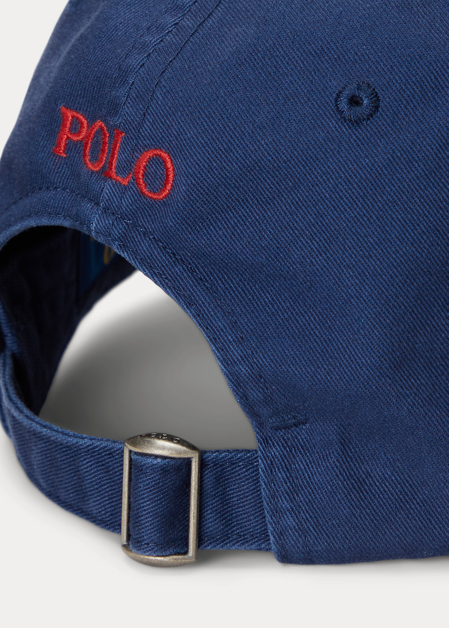 - Signature embroidered Pony at the front. “Polo” embroidery and a buckled strap at the back.