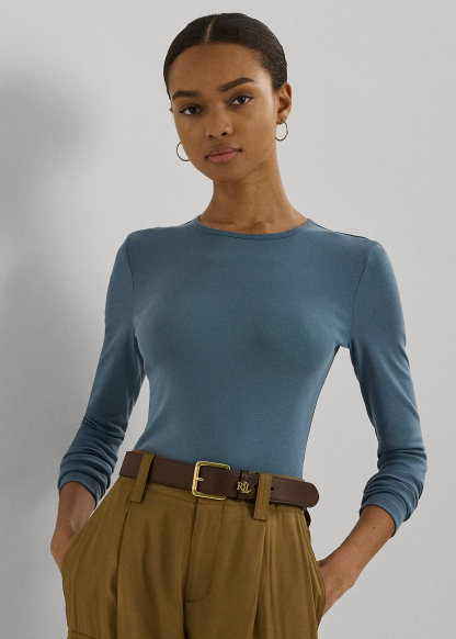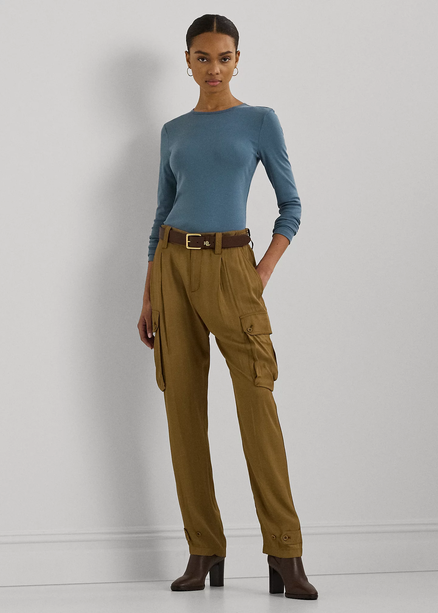 - Signature "LRL" monogram embroidered at the right hem.