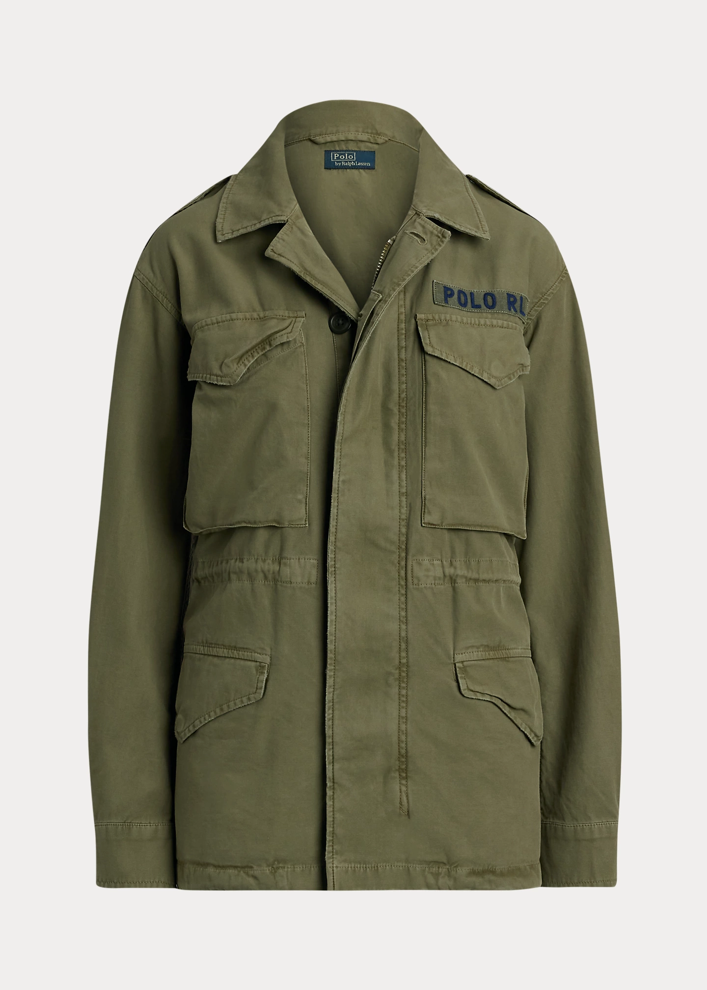 - Two front chest and two front waist flapped pockets with a concealed snapped closure. Interior left waist besom pocket. Bi-swing construction. Drawstring waist and hem. Lined at the upper back. "Polo RL" patch above the left chest pocket.