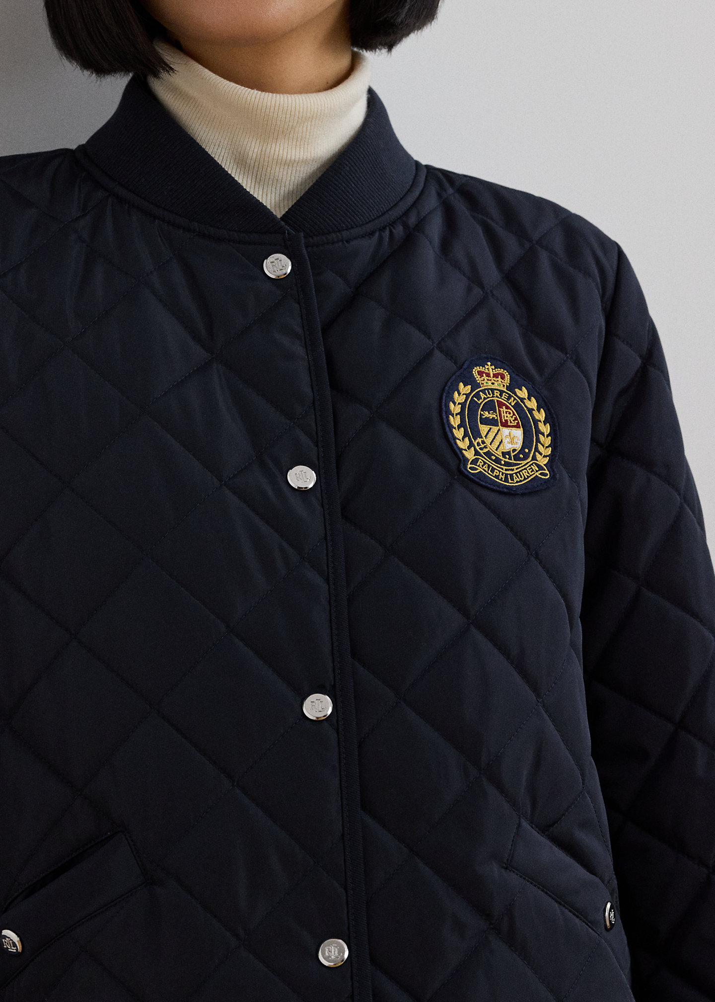 - Long sleeves with ribbed cuffs. Two front waist snapped welt pockets. Signature crest patch at the left chest.