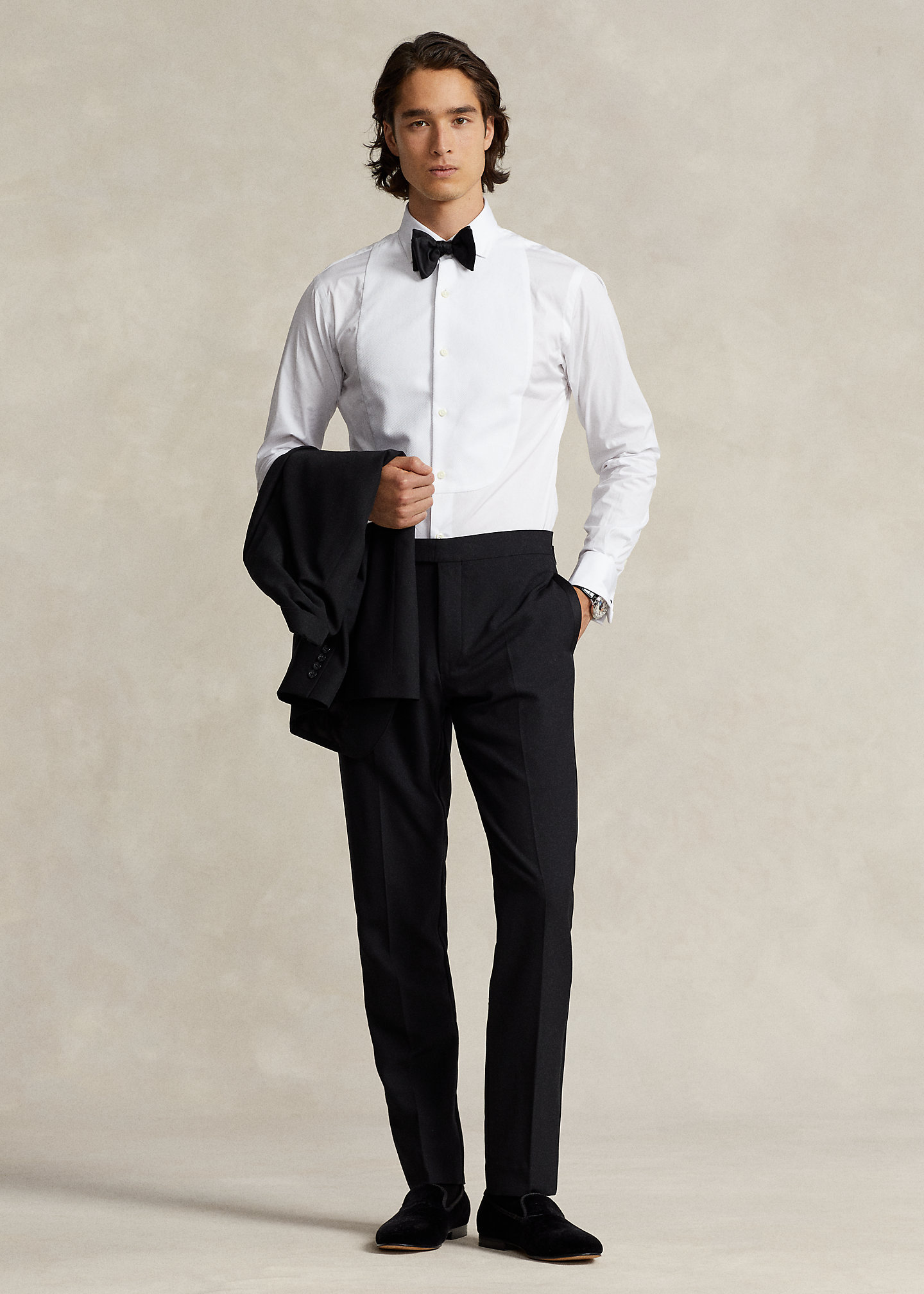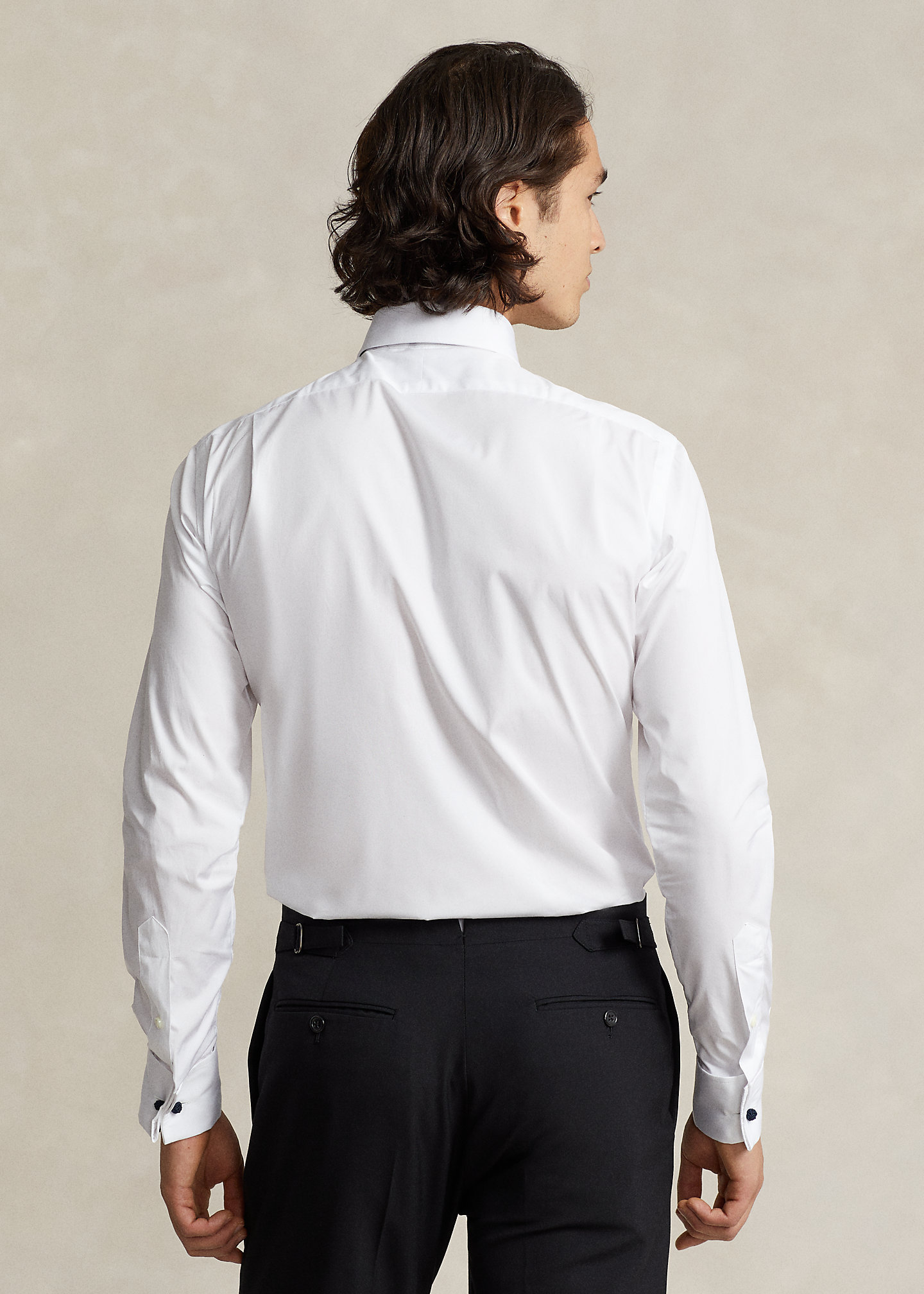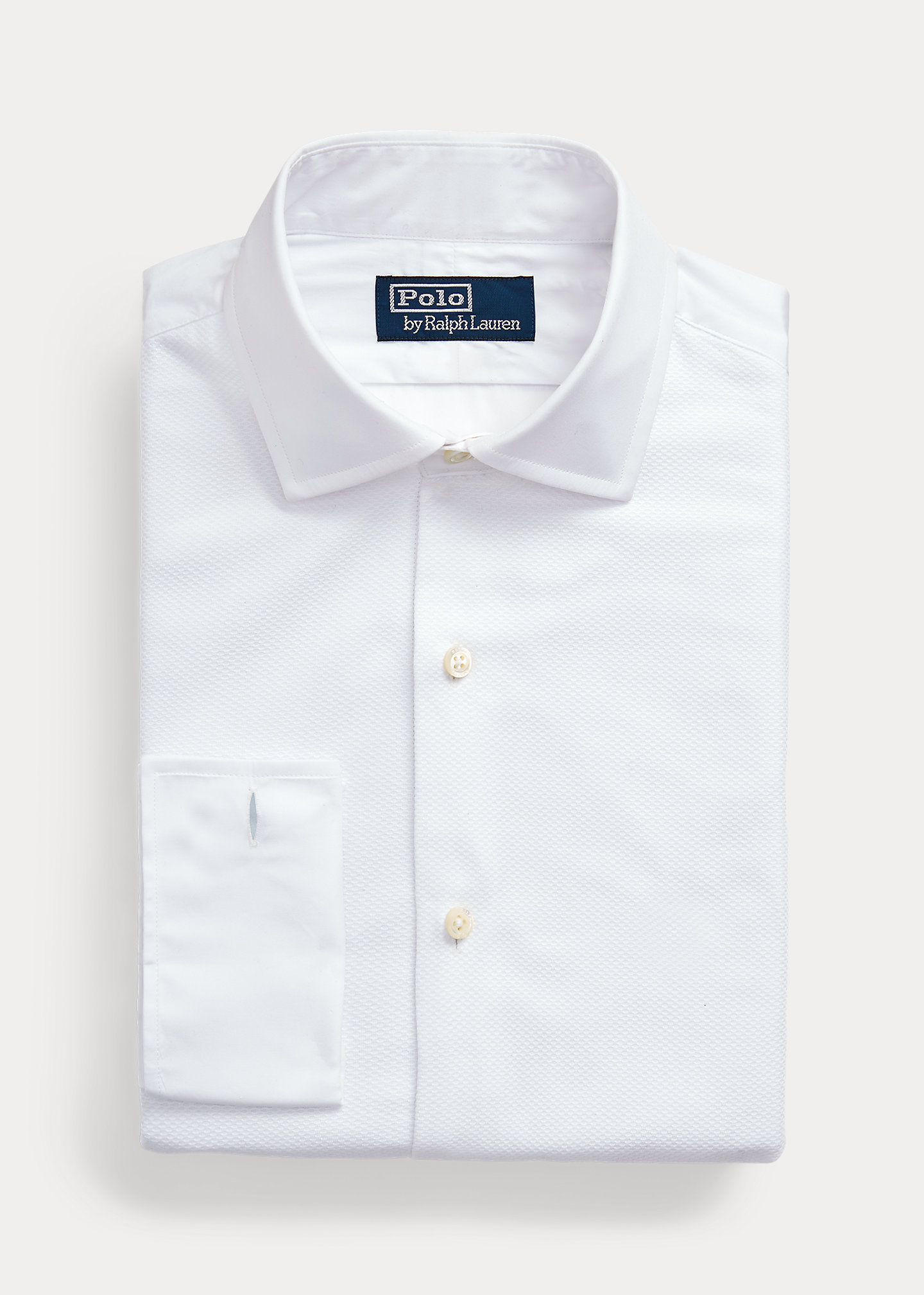 - Long sleeves with French cuffs.