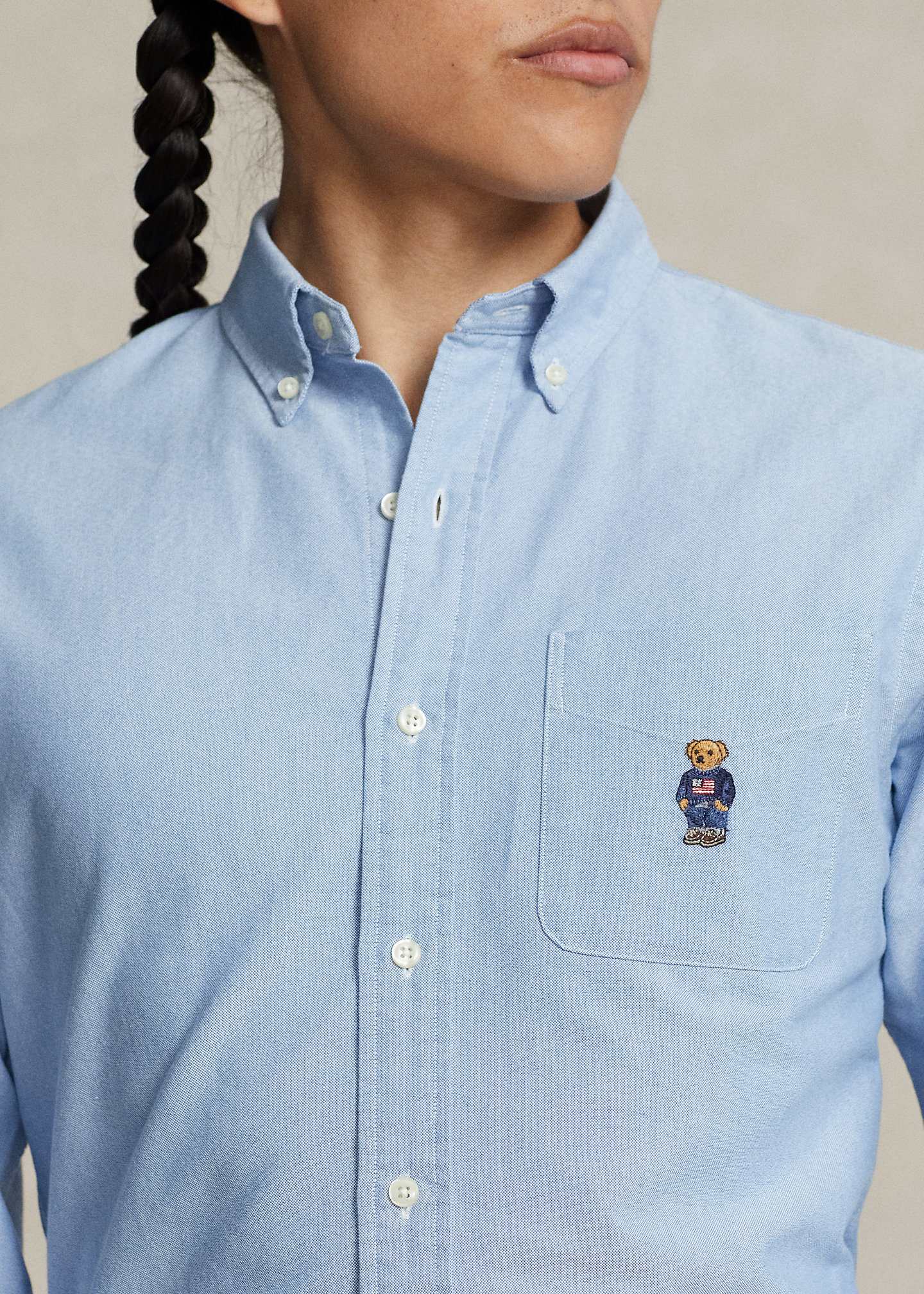- Long sleeves with buttoned barrel cuffs. Left chest patch pocket.