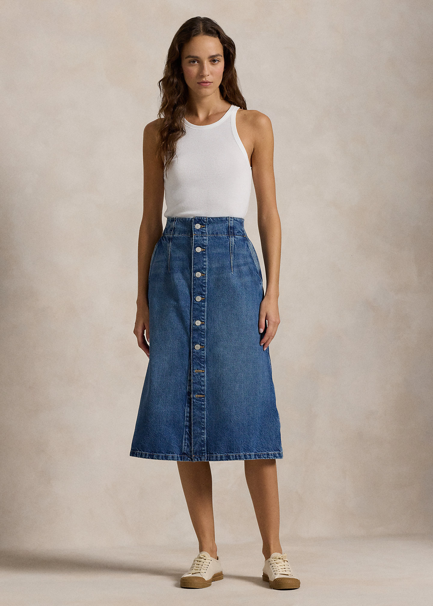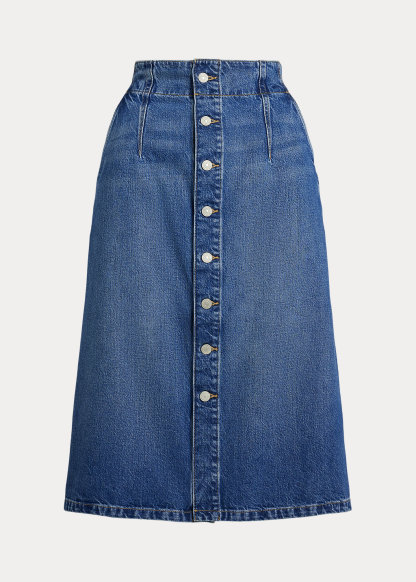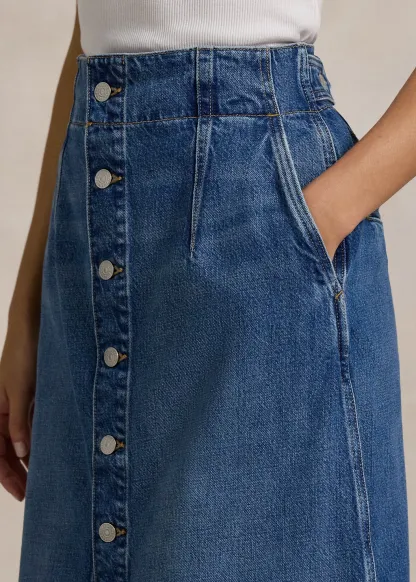 Denim A-Line Midi Skirt