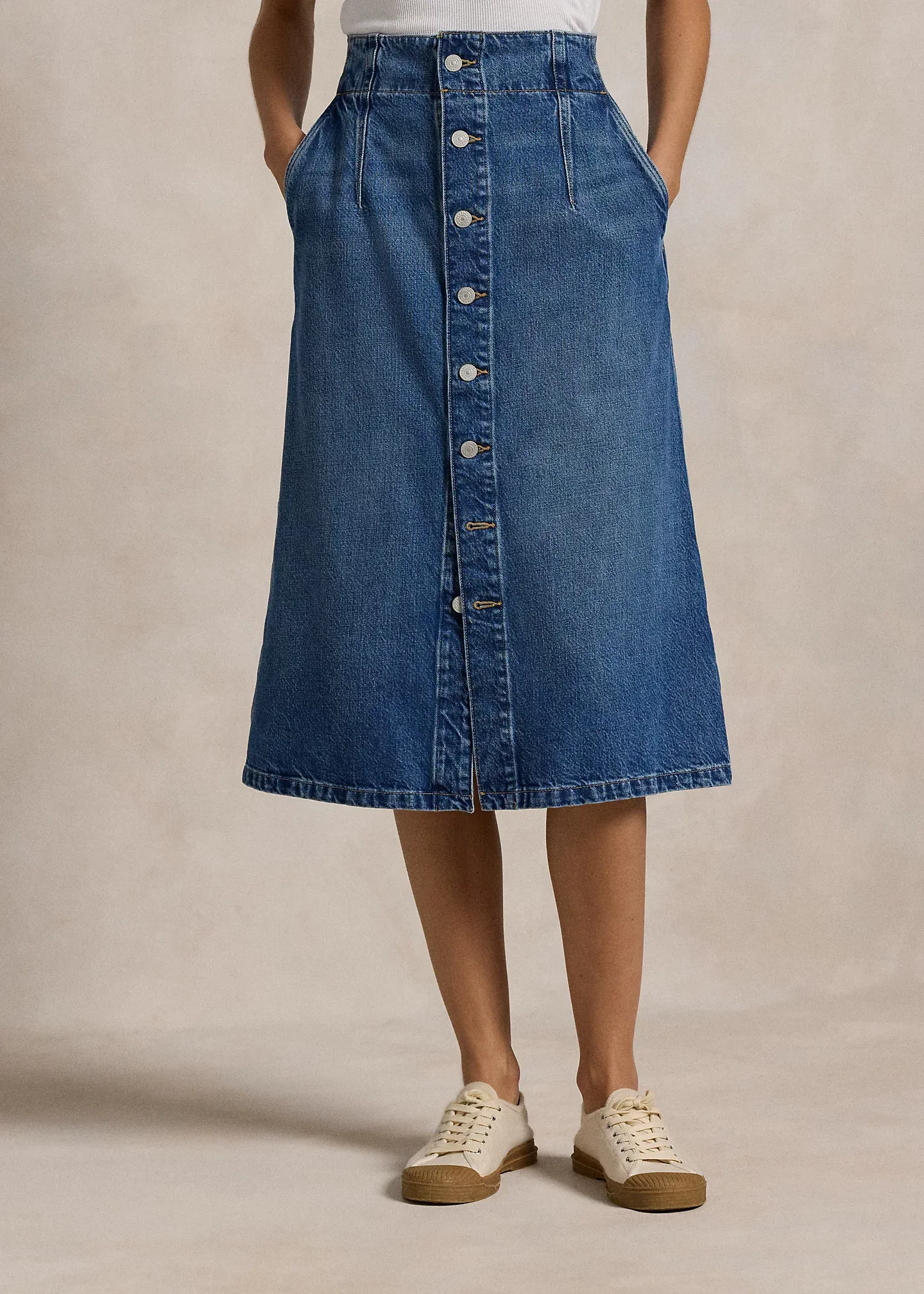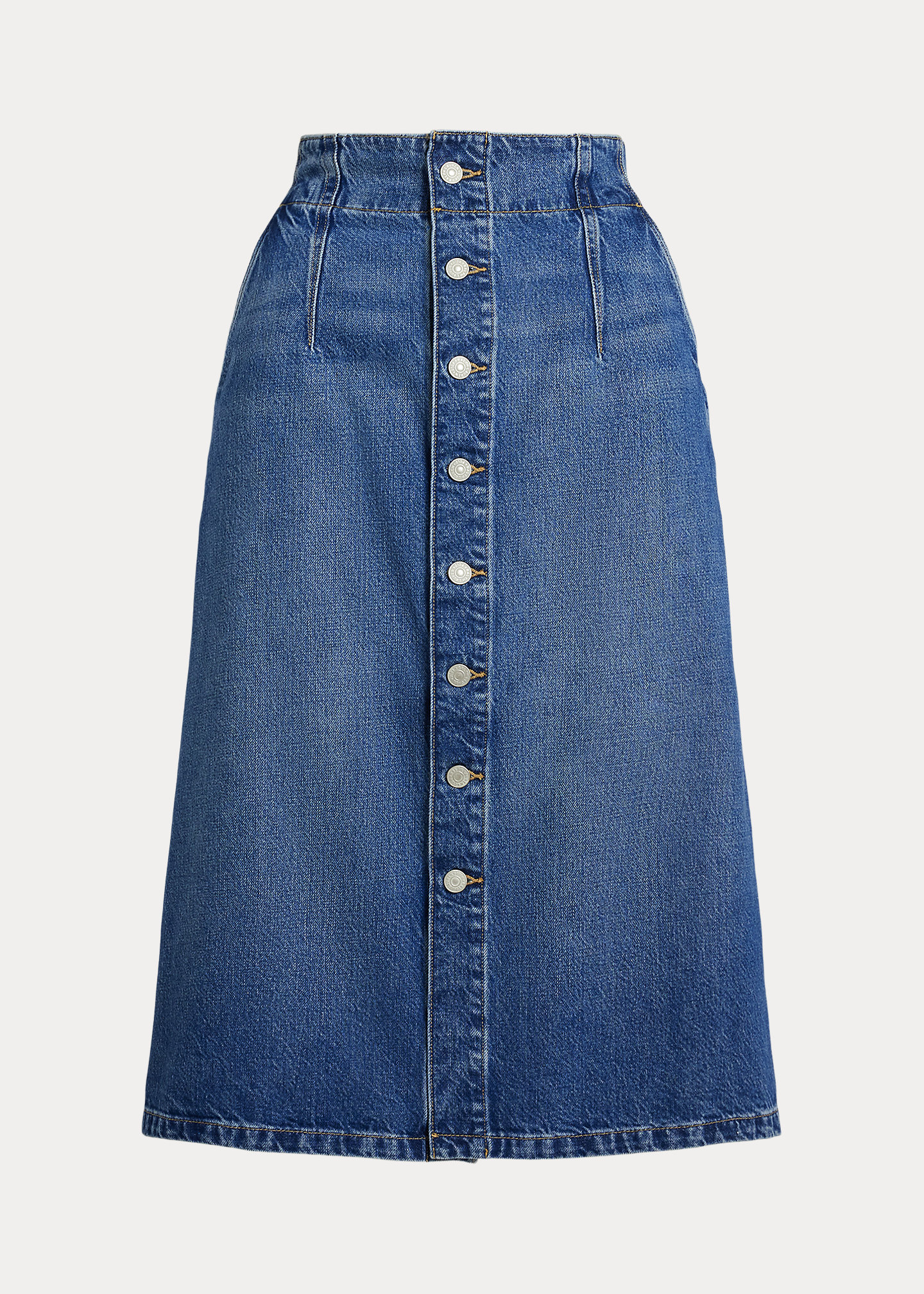 - Mid-rise. A-line silhouette. Intended to hit at the upper calf.